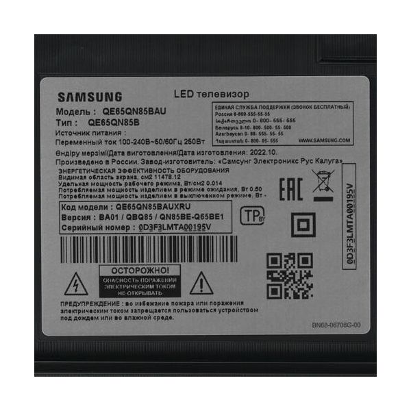 Описание товара Телевизор Samsung 65 QE65QN85BAUXRU