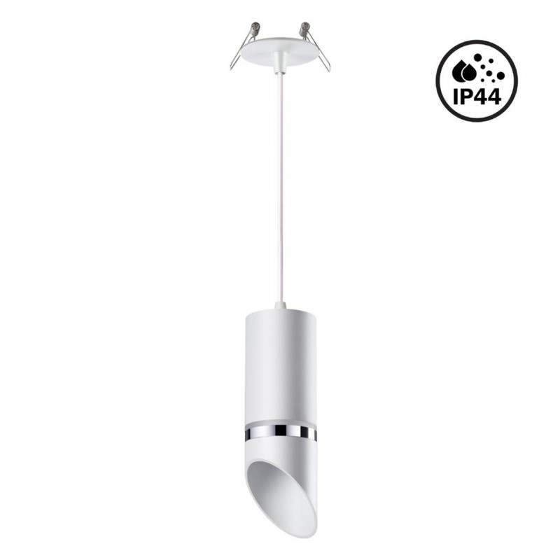 Встраиваемый подвесной светильник с повышенной степенью пылевлагозащиты (IP44) подходит для установки во влажные помещения. Длина провода 1,85м. В корпусе светильника есть акриловые части, поэтому его используют только с LED лампой max.9Вт. Лампа в комплект не входит.
