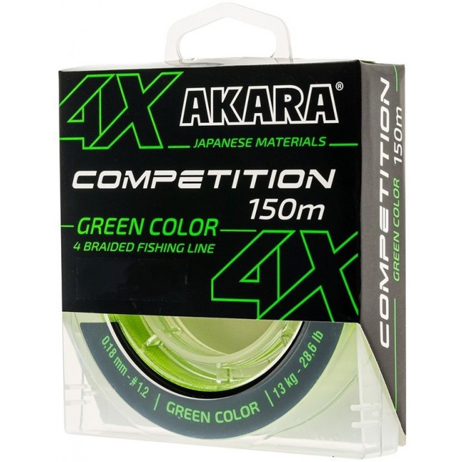 Competition X-4 – универсальный плетёный четырехжильный рыболовный шнур, выпускаемый под торговой маркой Akara. Шнур создан для того чтобы удовлетворить потребности рыболовов в качественном, надежном, прочном и недорогом шнуре. Эффективен для ловли на мелкие приманки. Сплетен из но-вого современного волокна японского производства повышенной плотности. Отличается высокой прочностью и надежностью и подойдет практически для любых условий лова, в том числе для ловли в местах, где высока вероятность зацепов. Competition X-4 имеет круглую форму.