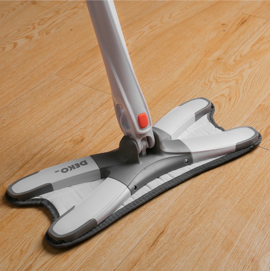 Х-образная швабра для мытья полов с функцией отжима "чистые руки" DEKO DKFM02 подходит для сухой и влажной уборки внутренних и внешних поверхностей, например, деревянных и виниловых полов, плитки, ступеней, дорожек.