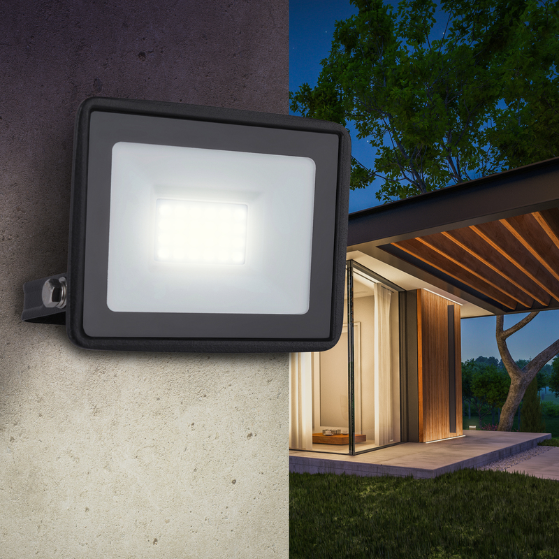 Прожектор светодиодный уличный с высоким световым потоком. Корпус -черный, изготовлен из прочного алюминия, стекло закаленное. Экономичная LED-технология сократит до 90% затрат на электроэнергию. Прожектор устойчив к механическим воздействиям, защищен от дождя и пыли, работает при широком диапазоне температур (от -40 до +45). Отличается простой и быстрой установкой: есть кронштейн специальной формы и регулировочные болты для выбора направления света. Подходит как для внутреннего, так и для наружного применения.