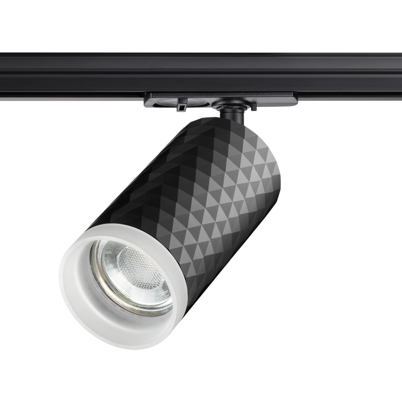 Светильник трековый для однофазного двухжильного (универсального) шинопровода. В корпусе светильника есть акриловые части, поэтому его используют только с LED лампой max.9Вт.