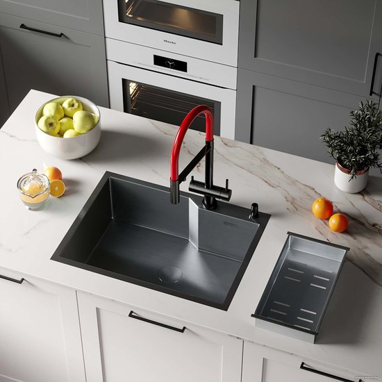 Комплектациясифон с гофрой, коландер из нержавеющей стали, дозатор для моющих средств, корзинчатый вентиль, 2 заглушки на отверстия, комплект креплений к столешнице