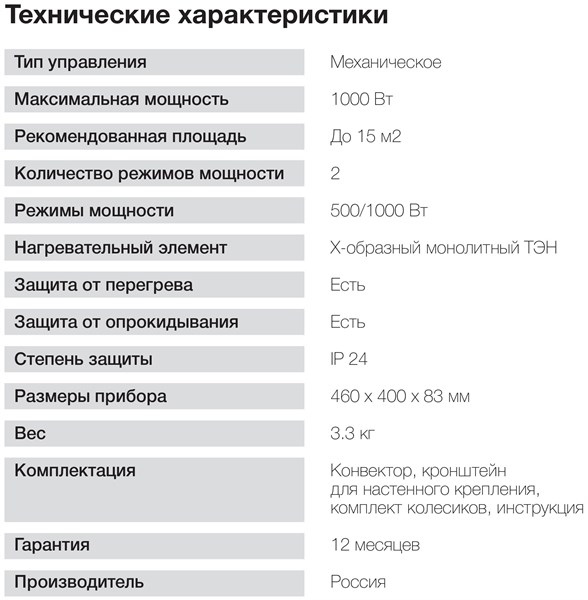 • Мощность обогрева 1000 Вт