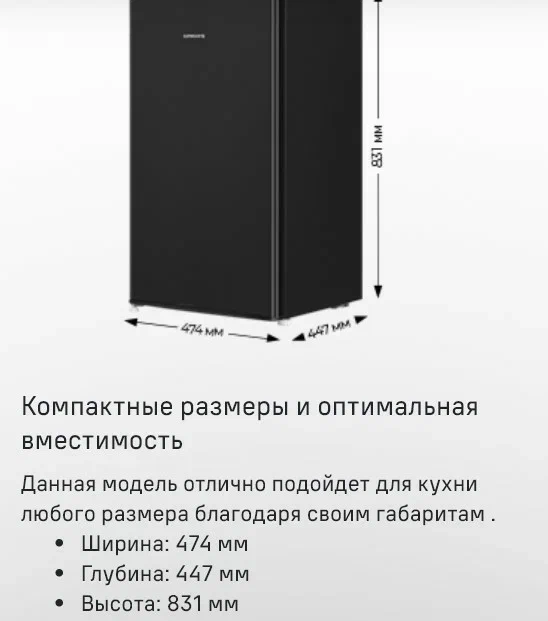 Компактный однокамерный однодверный холодильник высотой 83 см с камерой охлаждения.