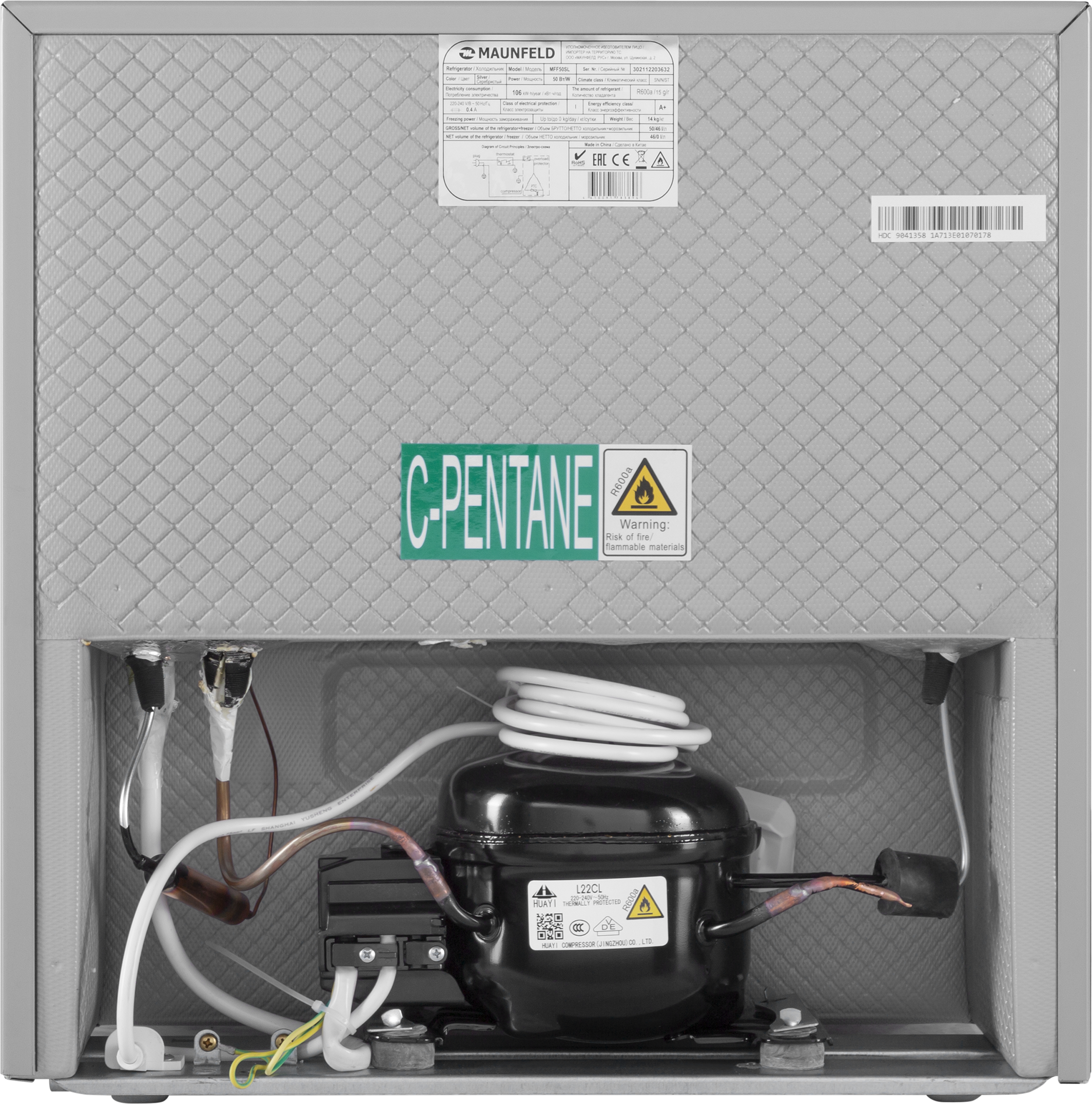 Компактный однокамерный однодверный холодильник высотой всего 50 см с камерой охлаждения, располагающейся в верхнем углу.