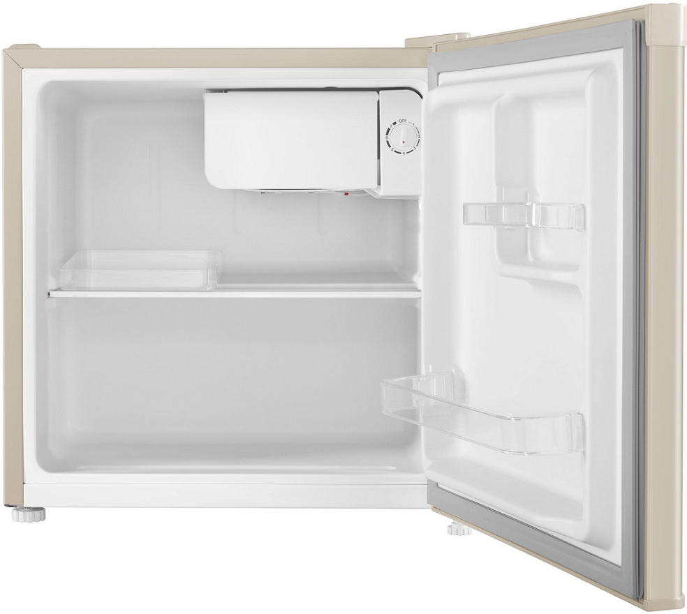 Компактный однокамерный однодверный холодильник высотой всего 50 см с камерой охлаждения, располагающейся в верхнем углу.