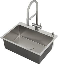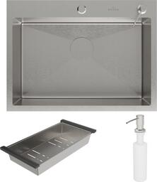 Комплектациясифо с гофройн, коландер из нержавеющей стали, дозатор для моющих средств, корзинчатый вентиль, 2 заглушки на отверстия, комплект креплений к столешнице
