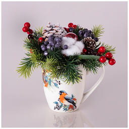 ЦВЕТОЧНАЯ КОМПОЗИЦИЯ В КРУЖКЕ "ТОРЖЕСТВО" ШИРИНА 19 см*ВЫСОТА 19 см- БЕЗ УПАКОВКИ 23-2323