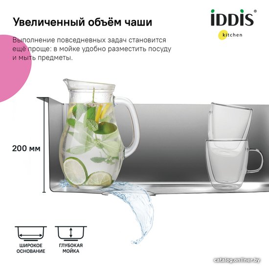 • Глубина мойки 44 см