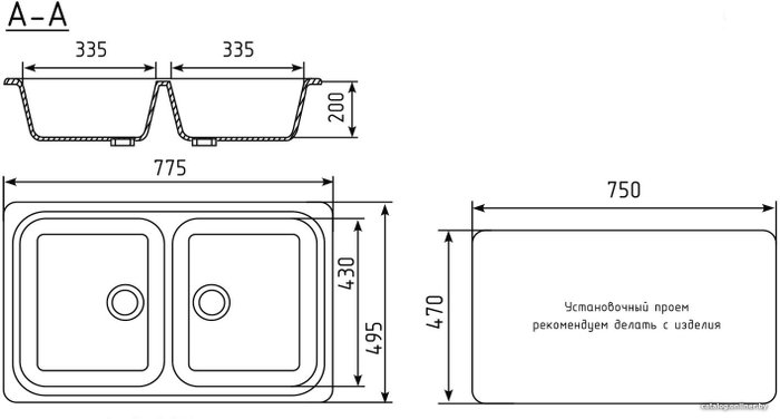 • Способ установки врезная на столешницу