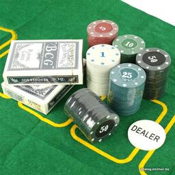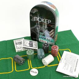 - Комплектация две колоды полупластиковых игральных карт, 120 игровых пластиковых фишек с номиналом, 1 фишка Dealer ,сукно игровое, инструкция, металлическая коробка 15*6*24см