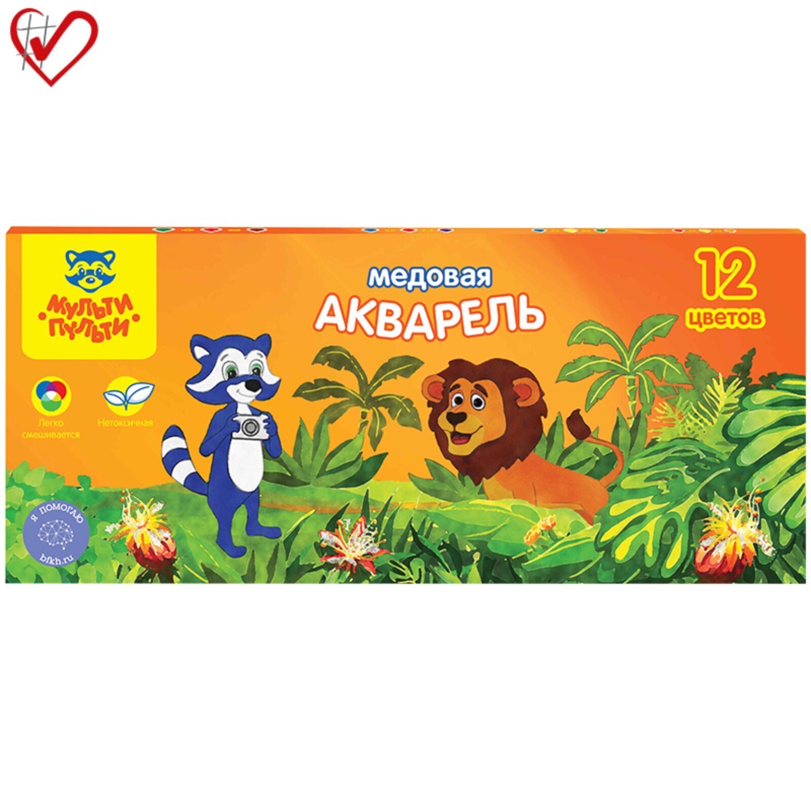 Акварель 12цв картон Мульти-Пульти "Енот в джунглях", медовая, без кисти 240033