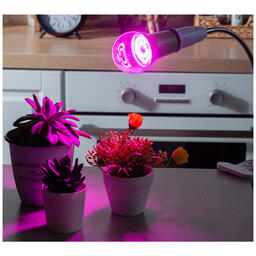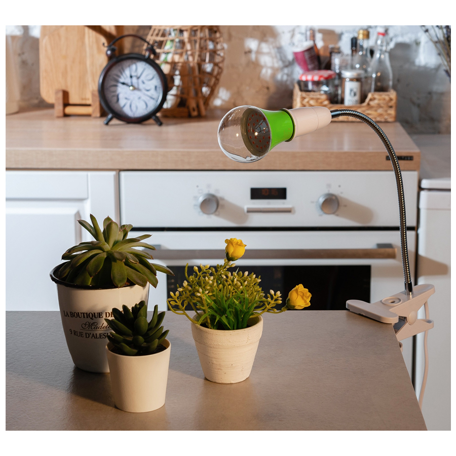 Спектр SPSB лампы, имеющий красно-синее свечение, используется для ускорения роста и развития рассады. Симпатичный цветной дизайн привлекает внимание к данной модели. Фитолампа со стандартным цоколем Е27, не требует покупки специальных ламп. Энергоэффективность класса А++, работает до 30 000 часов.