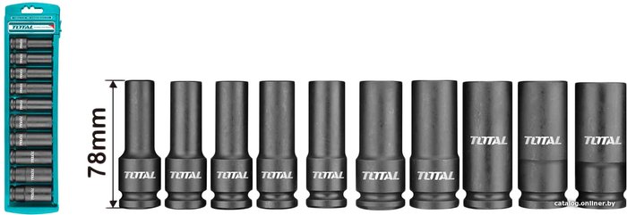 - Комплектация - Торцевая удлиненная головка ударная (10 мм, 12 мм, 13 мм, 14 мм, 15 мм, 17 мм, 19 мм, 21 мм, 22 мм, 24 мм) - 10 шт.- Пластиковый держатель для хранения - 1 шт.