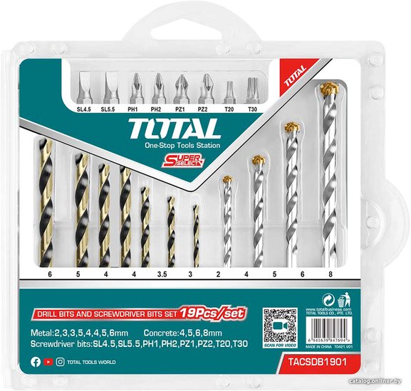 - Размер биты PH1, PH2, PZ1, PZ2, SL4.5, SL5.5, T20, T30