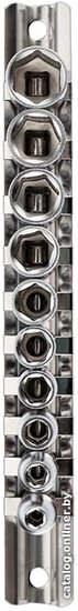 • Комплектация В набор входят 6-гранные торцевые головки на планке под квадрат 1/4" следующих размеров:Головка торцевая, 4 мм: 1 шт.Головка торцевая, 5 мм: 1 шт.Головка торцевая, 6 мм: 1 шт.Головка торцевая, 7 мм: 1 шт.Головка торцевая, 8 мм: 1 шт.Головка торцевая, 9 мм: 1 шт.Головка торцевая, 10 мм: 1 шт.Головка торцевая, 11 мм: 1 шт.Головка торцевая, 12 мм: 1 шт.Головка торцевая, 13 мм: 1 шт.