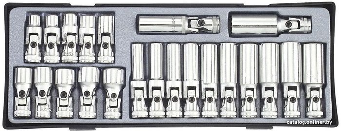 - Комплектация - 6-гранные торцевые головки с карданом 3/8”, длина 42 мм., размеры: 10; 11; 12; 13; 14; 15; 16; 17; 18; 19 мм.; - 6-гранные торцевые головки глубокие с карданом 3/8”, длина 85 мм., размеры: 10; 11; 12; 13; 14; 15; 16; 17; 18; 19 мм.; - 6-гранные торцевые головки с карданом магнитные 3/8”, длина 16 и 20.6 мм.