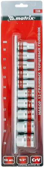 - Комплектация Набор торцевых головок, 1/2" 12-ти гр. CrV, 10-24мм