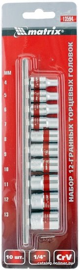 - Комплектация Набор торцевых головок, 1/4" 12-ти гр. CrV 4-13мм