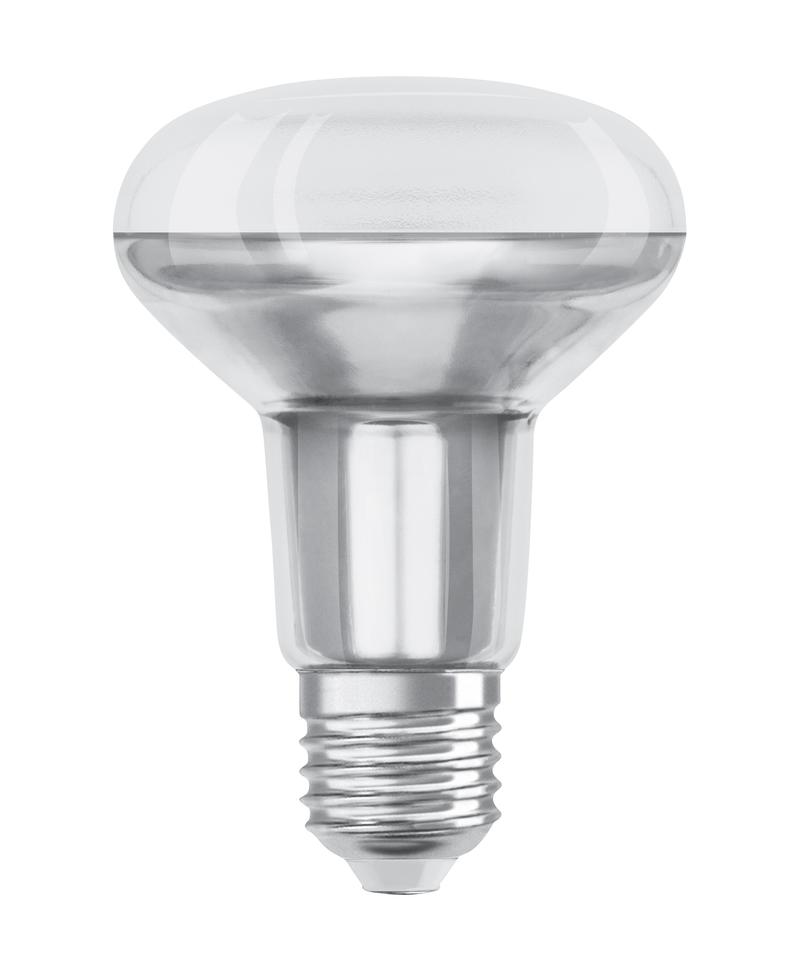 Лампа светодиодная OSRAM Parathom R80, 350лм, 4,3Вт (замена 60 Вт), 2700К (теплый белый свет). Цоколь E27,колба R80, угол пучка 36°. Исполнение колбы прозрачное, стекло. Напряжение питания 220-240В. Товар сертифицирован