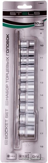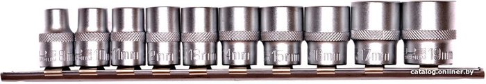 - Комплектация Набор торцевых головок, шестигранные: 8 мм, 10 мм, 11 мм, 12 мм, 13 мм, 14 мм, 15 мм, 16 мм, 17 мм и 19 мм.