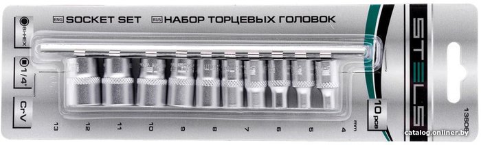 - Комплектация Набор торцевых головок, двенадцатигранные, CrV: 4-13 мм