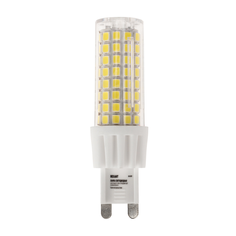 Светодиодная лампа REXANT капсульного типа JD-CORN G9 мощностью 7 Вт и с нейтральным белым свечением в 6500 K отлично подxодит для освещения комнат, коридоров, бытовыx помещений и промышленныx объектов.