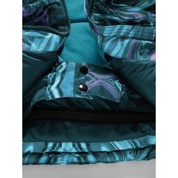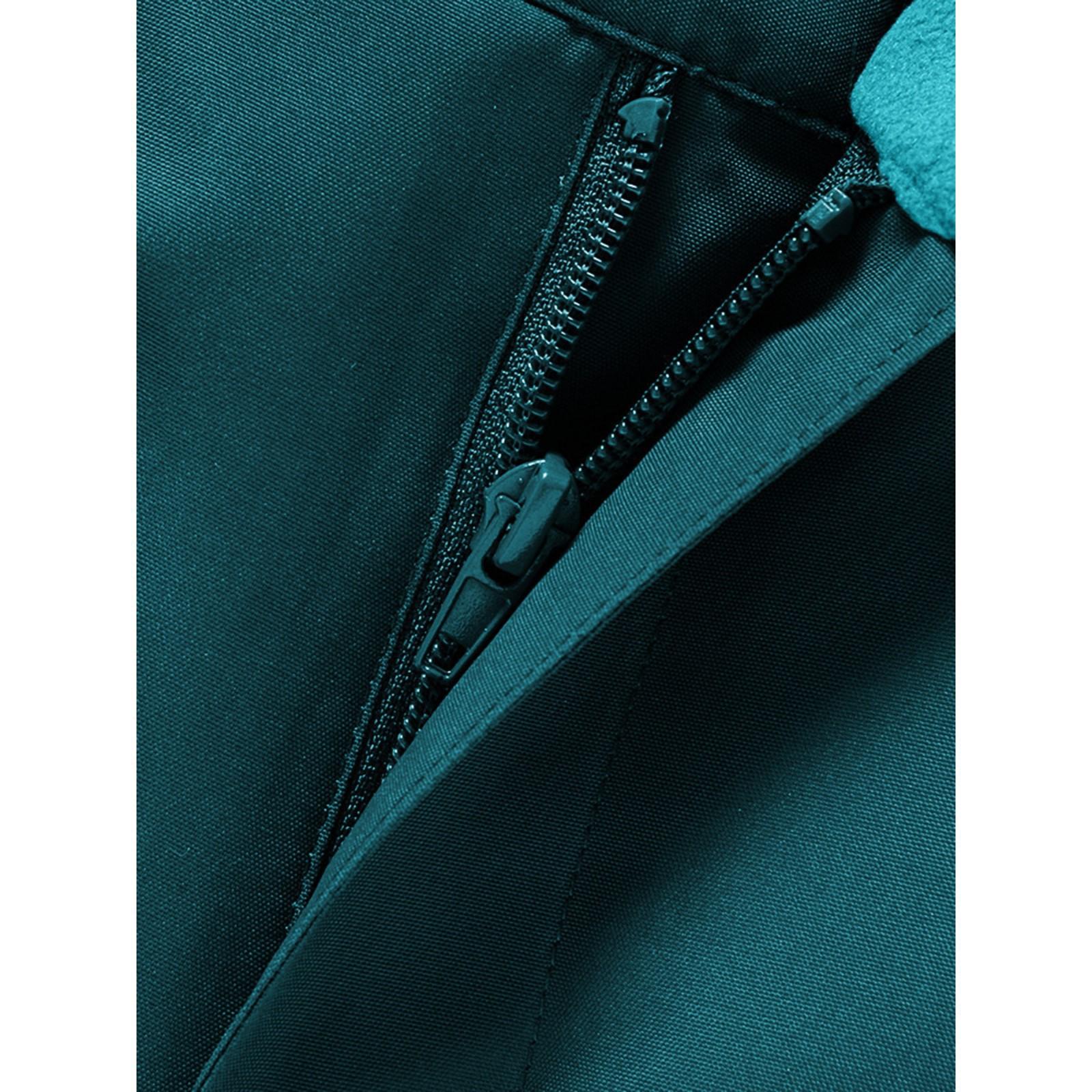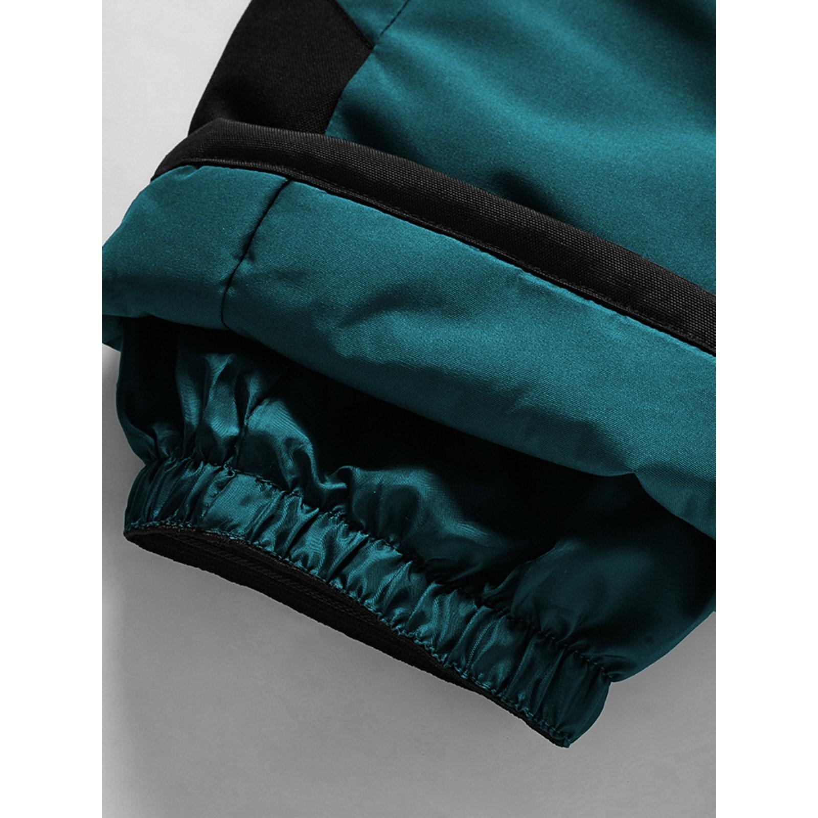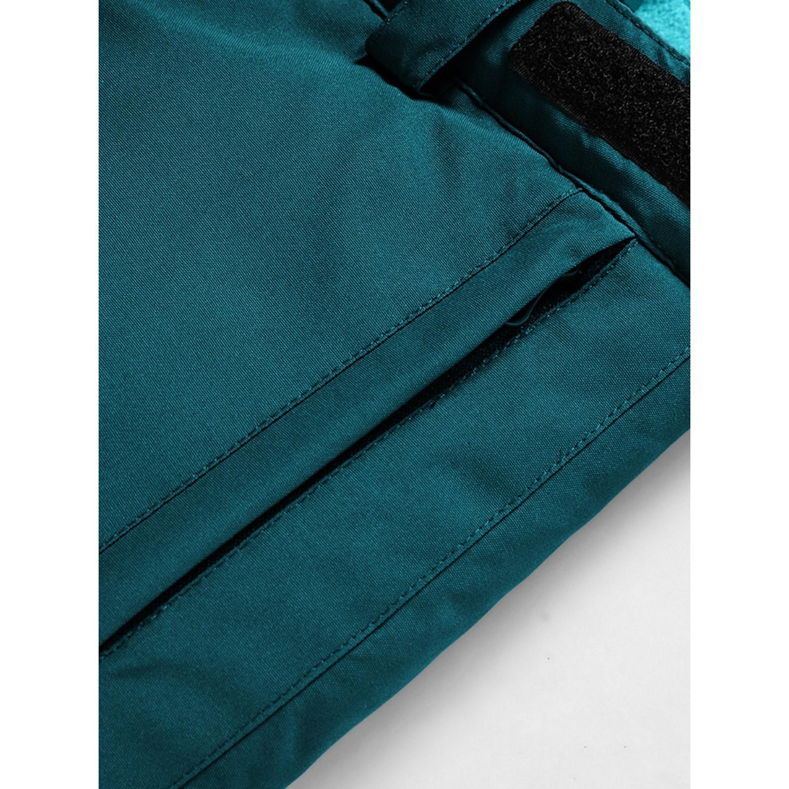 Зимняя куртка горнолыжная имеет четыре кармана: боковые прорезные на молнии, внутренний сетчатый кармашек и карман ски - пасс, капюшон съёмный на кнопках, ветрозащитная планка на кнопках и снегозащитная юбка, защитит поясницу от переохлаждения и будут препятствовать попаданию снега внутрь. Манжеты рукавов на резинке, для надежной фиксации и защиты от попадания снега.