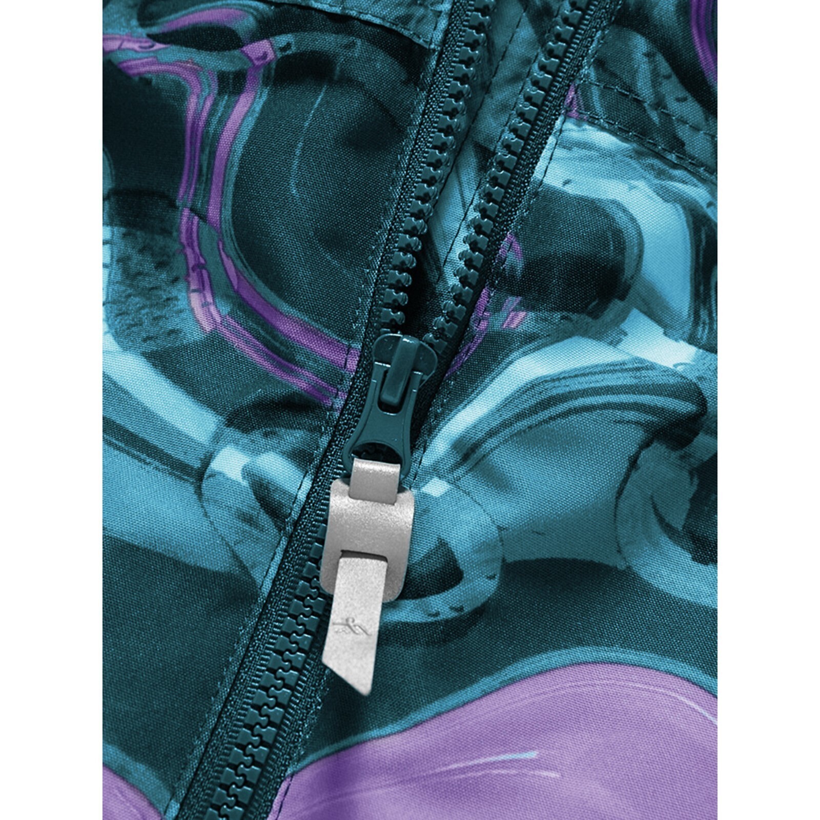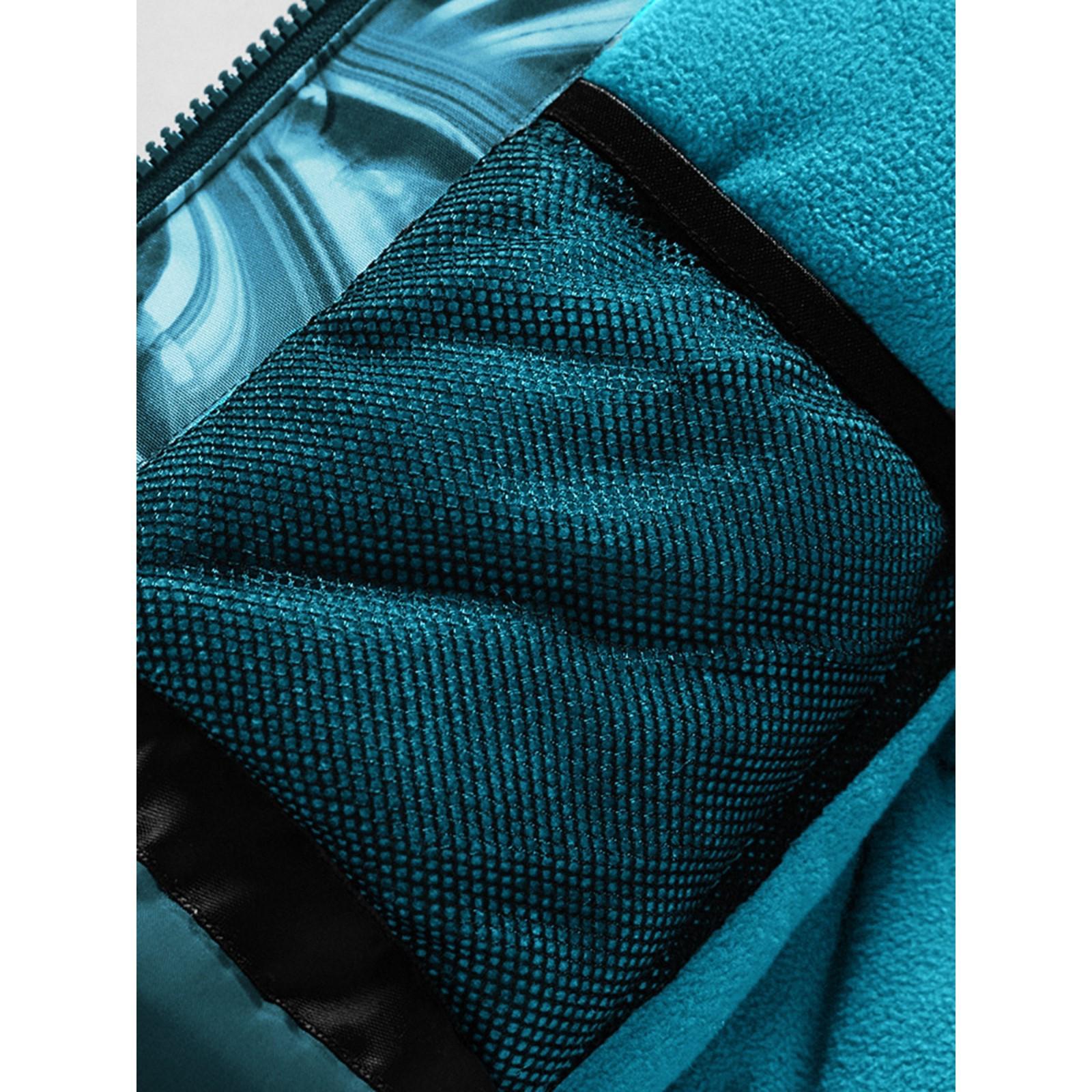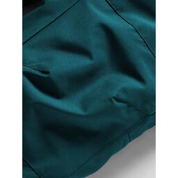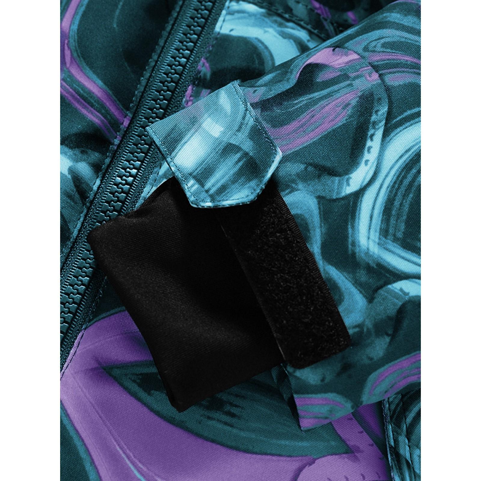 Зимняя куртка горнолыжная имеет четыре кармана: боковые прорезные на молнии, внутренний сетчатый кармашек и карман ски - пасс, капюшон съёмный на кнопках, ветрозащитная планка на кнопках и снегозащитная юбка, защитит поясницу от переохлаждения и будут препятствовать попаданию снега внутрь. Манжеты рукавов на резинке, для надежной фиксации и защиты от попадания снега.