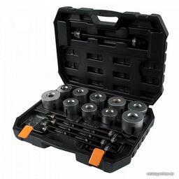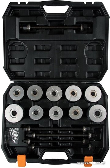 Монтаж и демонтаж внутренних и внешних обойм подшипников, сайлентблоков, втулок.Этапы работ:Исходя из размера сайлентблока, подберите к нему подходящие оправкиУстановите силовую шпильку во втулку сайлентблокаУстановите оправки с противоположных сторон сайлентблокаВращением гаек демонтируйте сайлентблокМонтаж и демонтаж внутренних и внешних обойм подшипников, сайлентблоков, втулок.Этапы работ:Исходя из размера сайлентблока, подберите к нему подходящие оправкиУстановите силовую шпильку во втулку сайлентблокаУстановите оправки с противоположных сторон сайлентблокаВращением гаек демонтируйте сайлентблок
