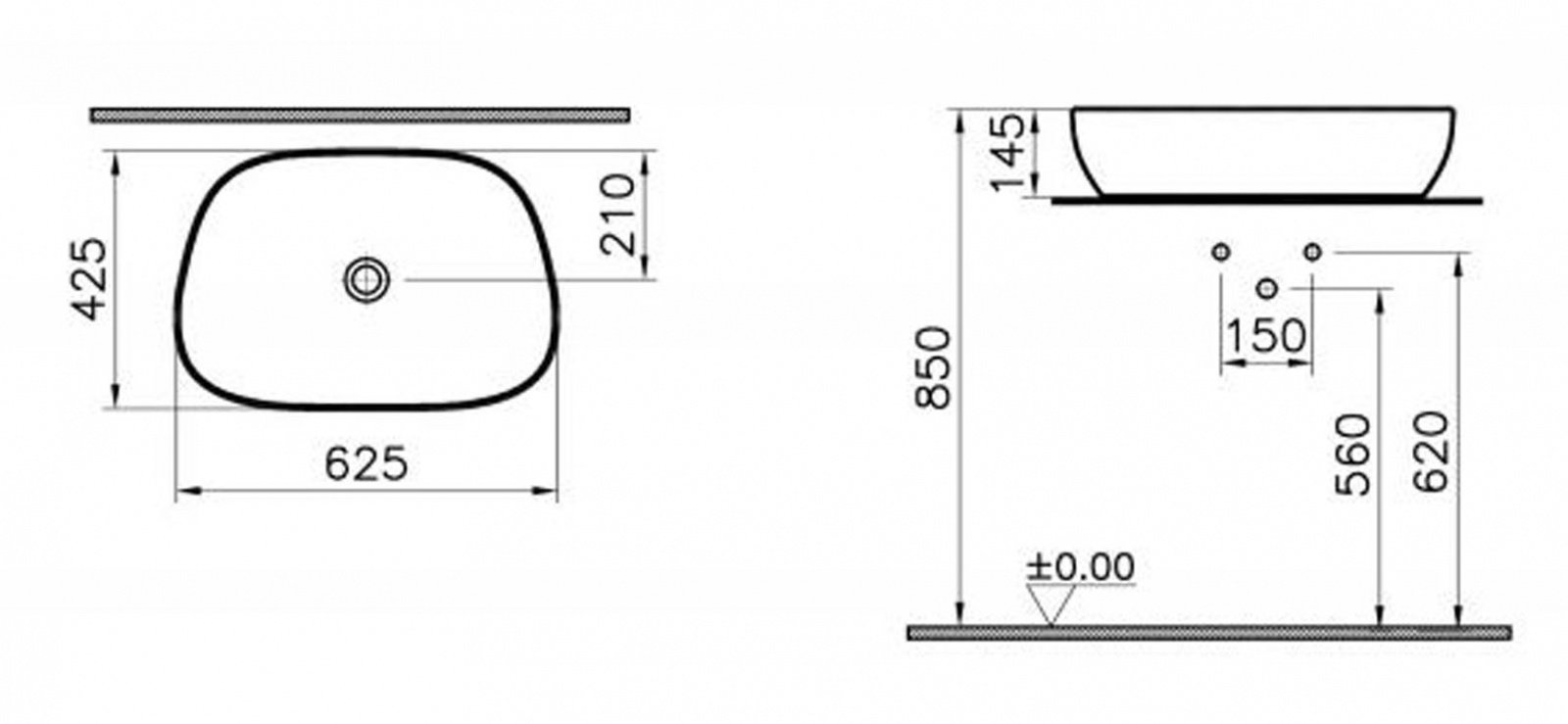 умывальник vitra outline 5993b420-0016 62,5x42,5 серо-коричневый
