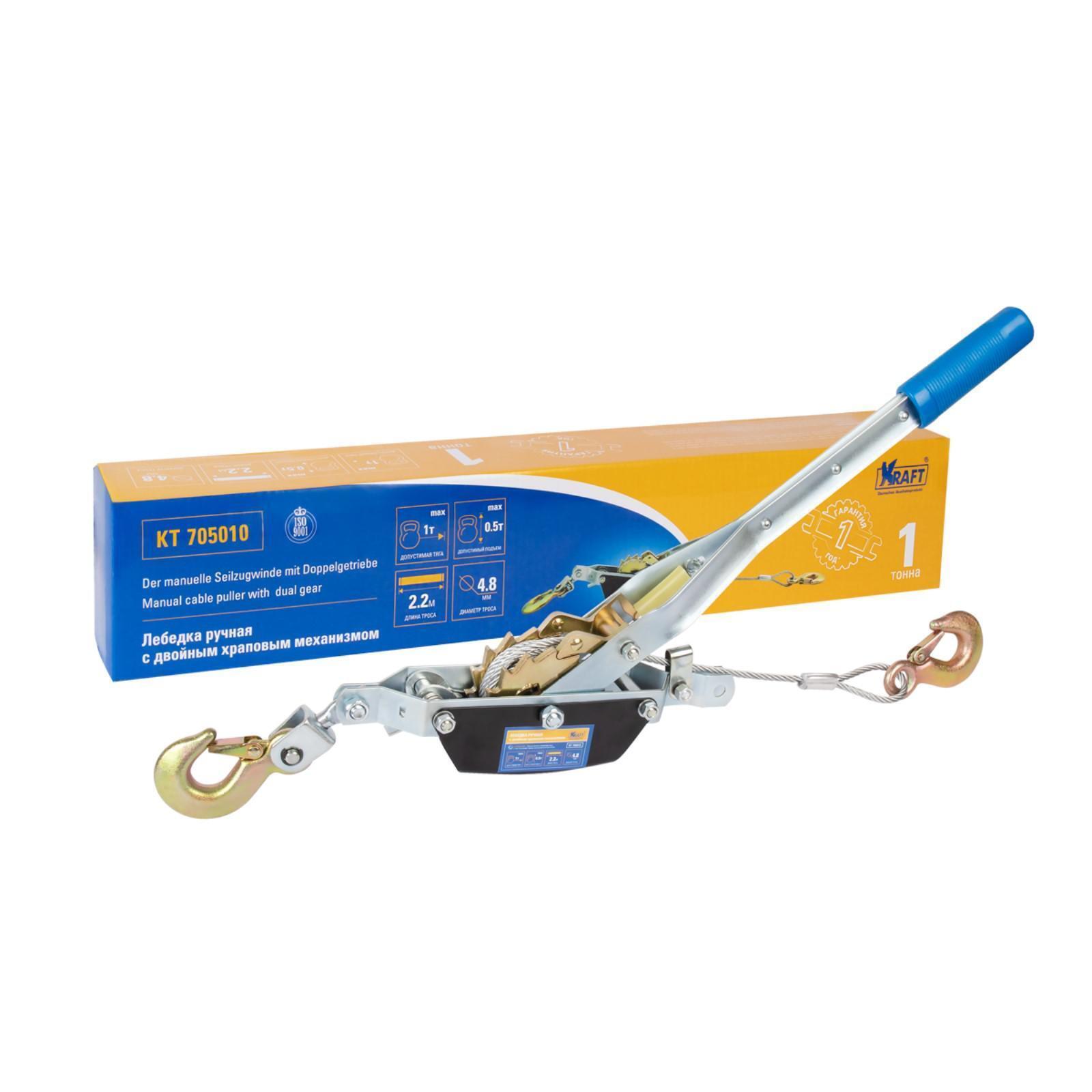 Лебедка ручная KRAFT KT705010, с двойным храповым механизмом, 1 т, 2.2 м, 2 крюка