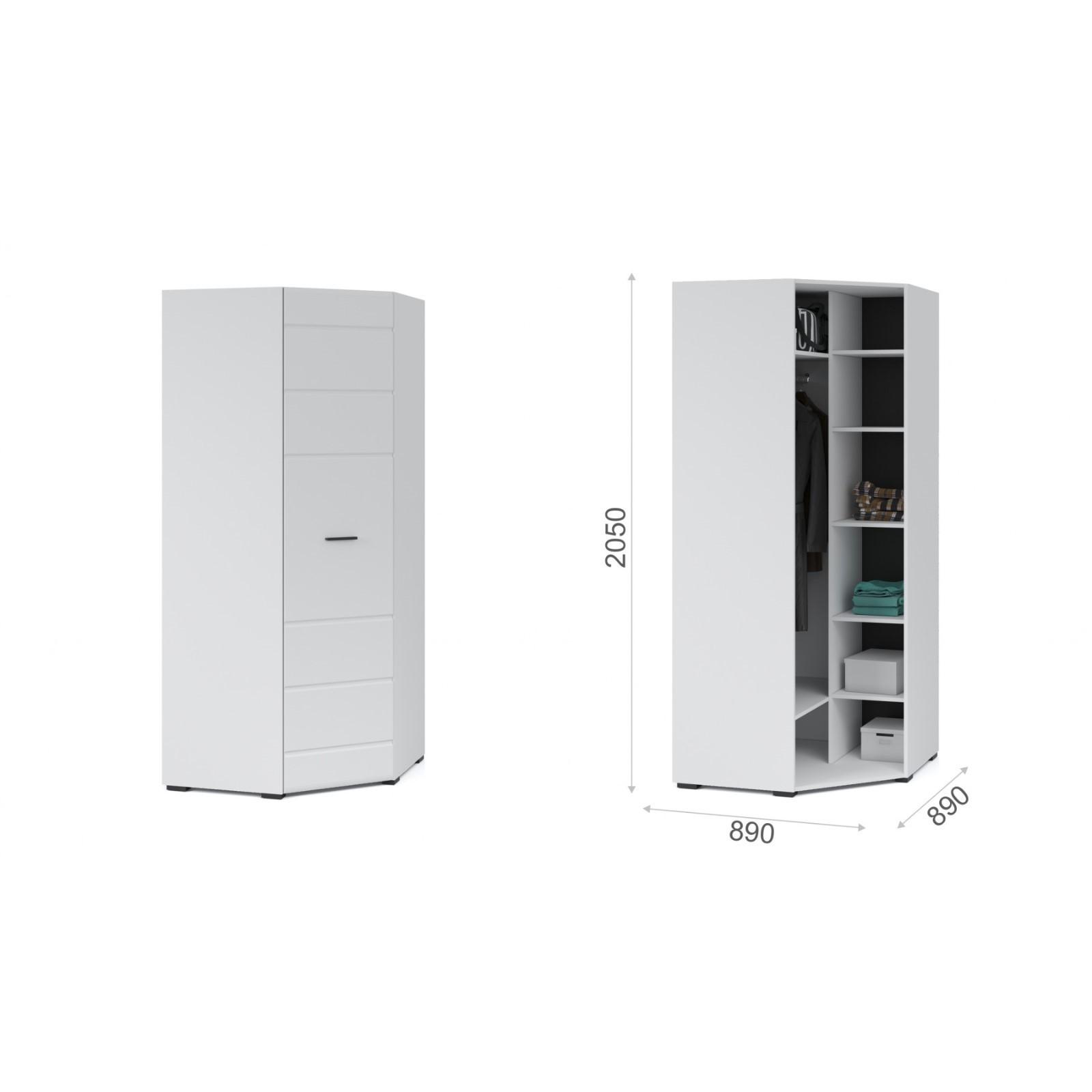 Шкаф угловой «Йорк», 890 × 890 × 2050 мм, цвет белый / белый глянец