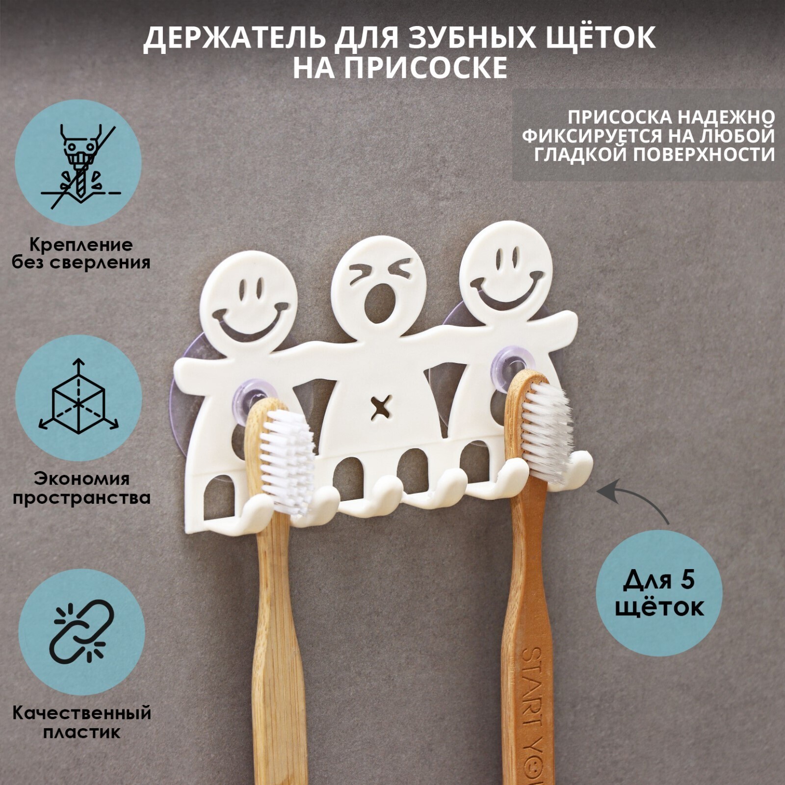 Держатель для зубных щёток на присосках, дизайн МИКС