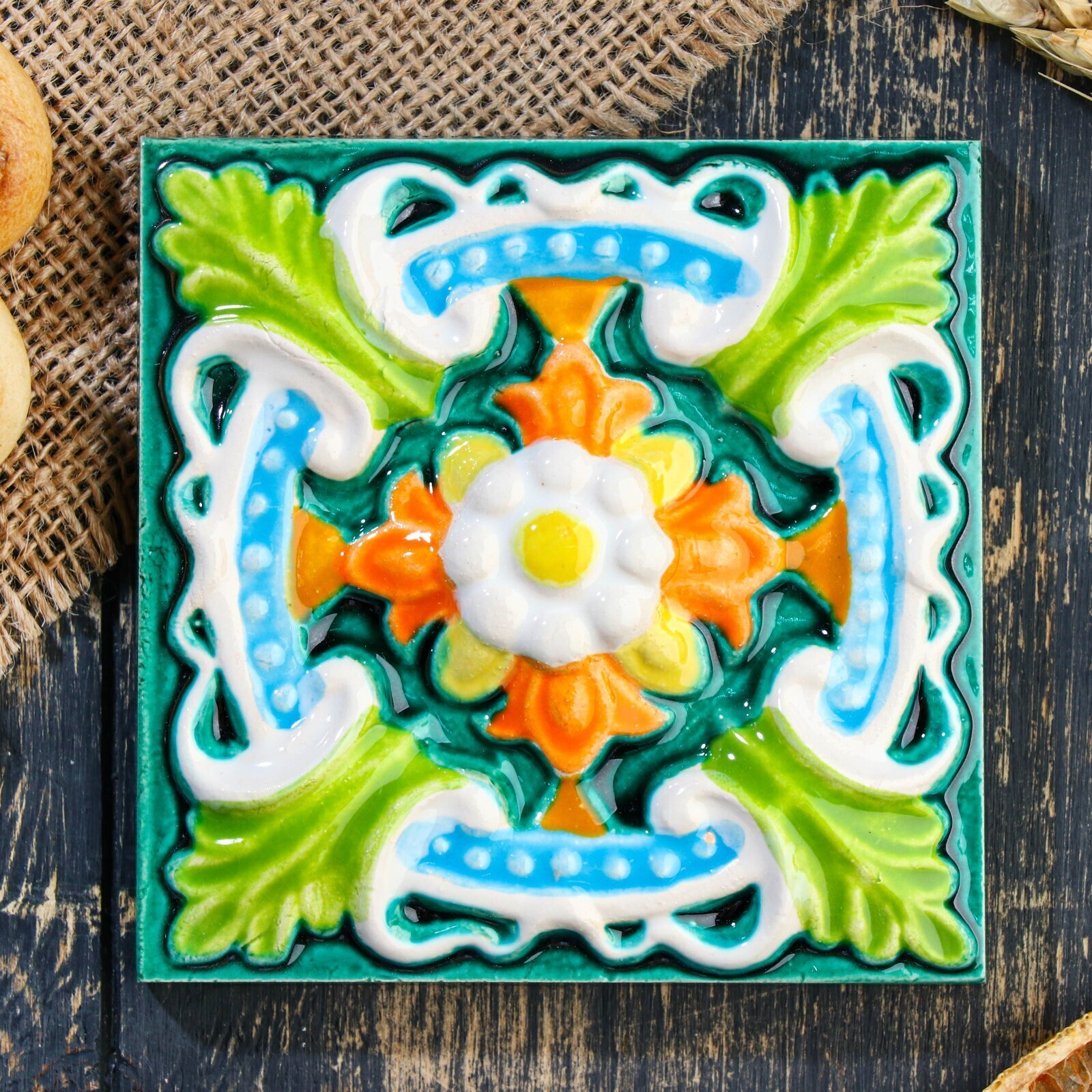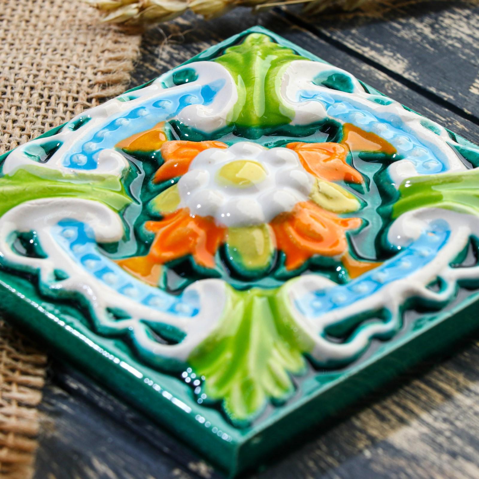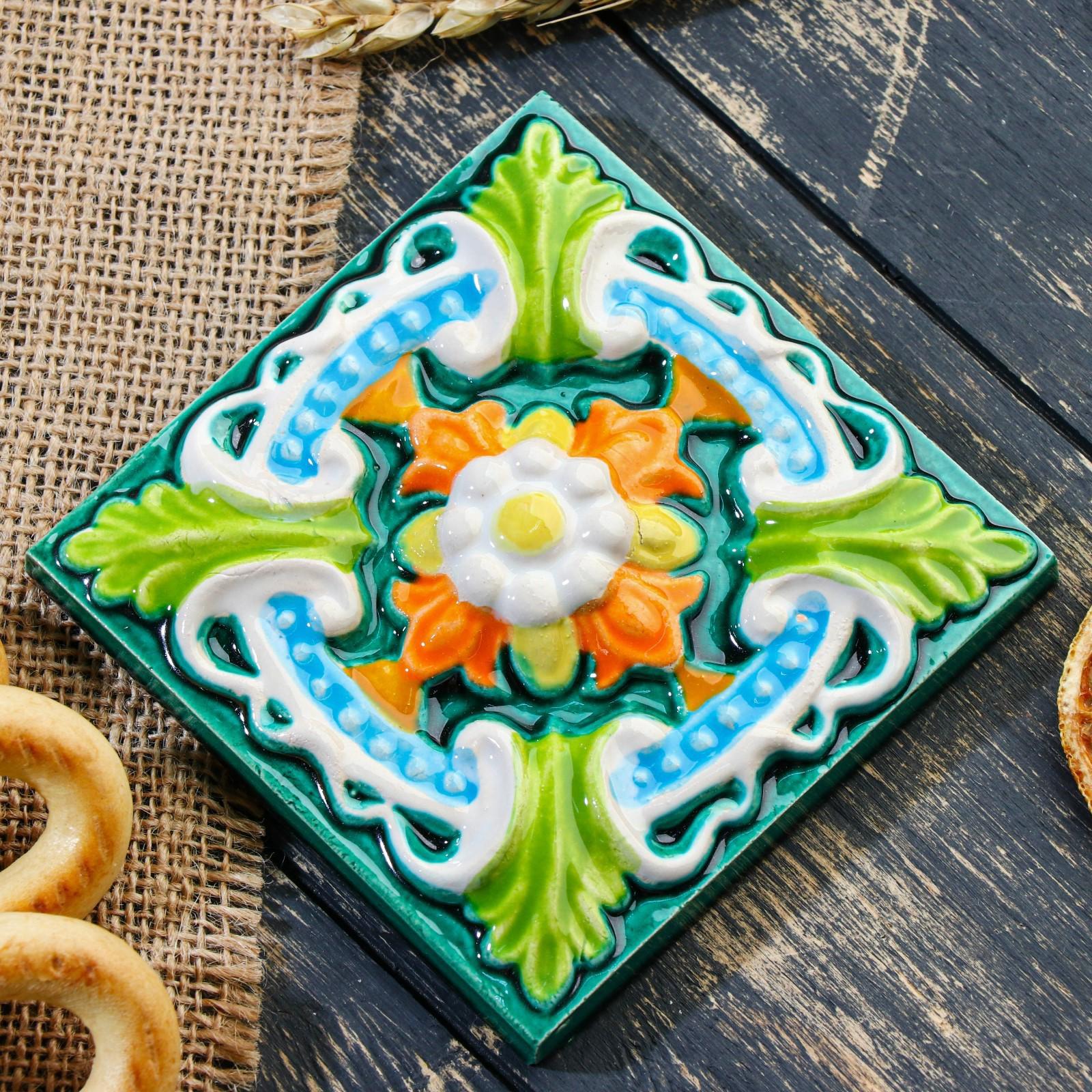 Изразец "Мифический Цветок", ярославская майолика, 10х10 см