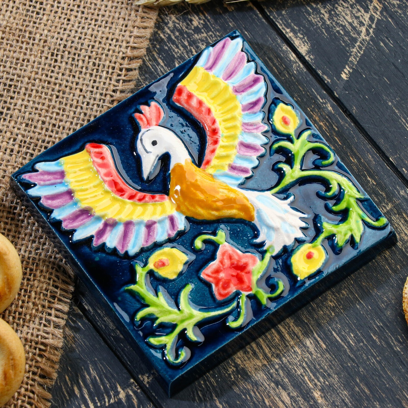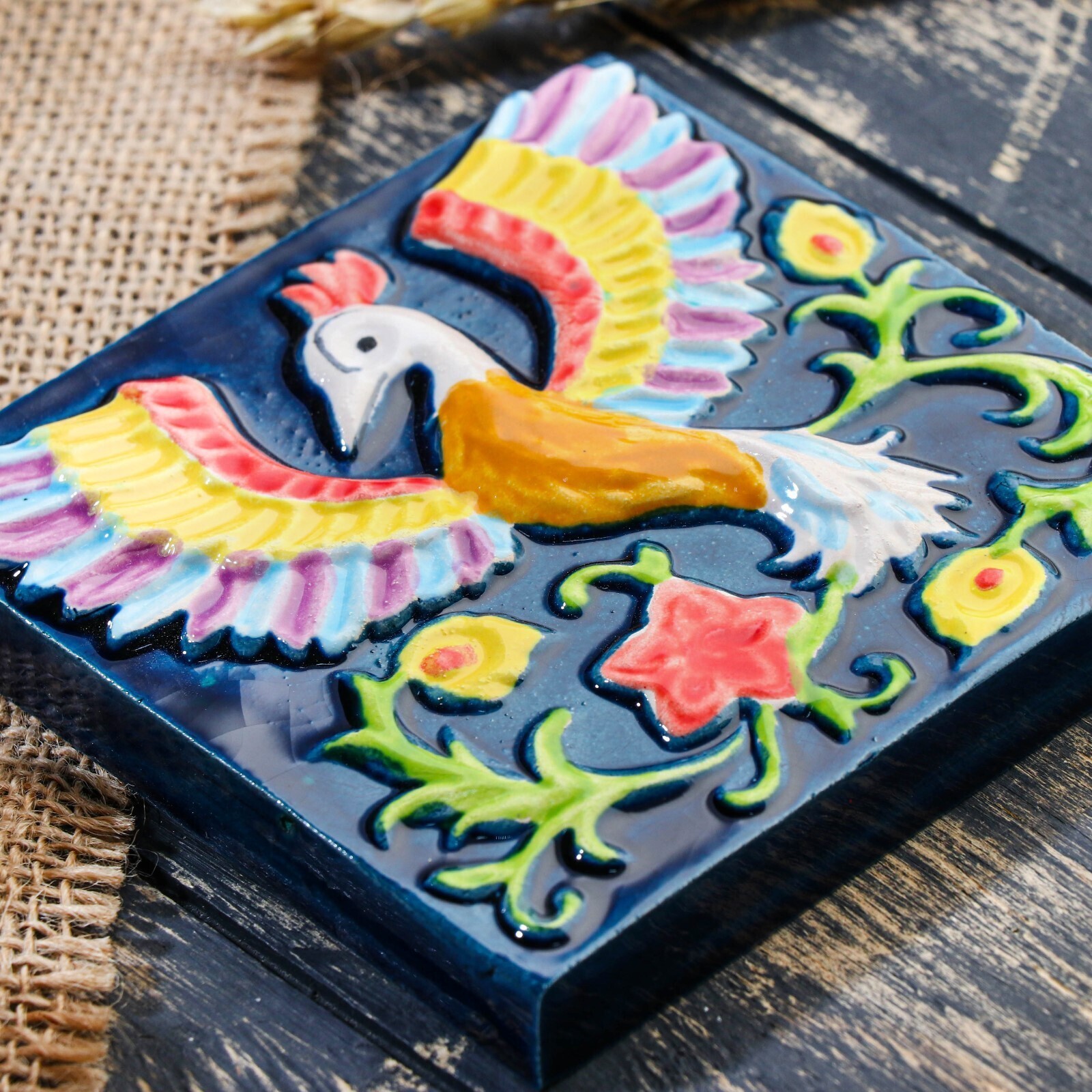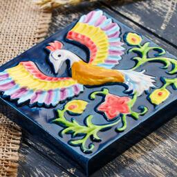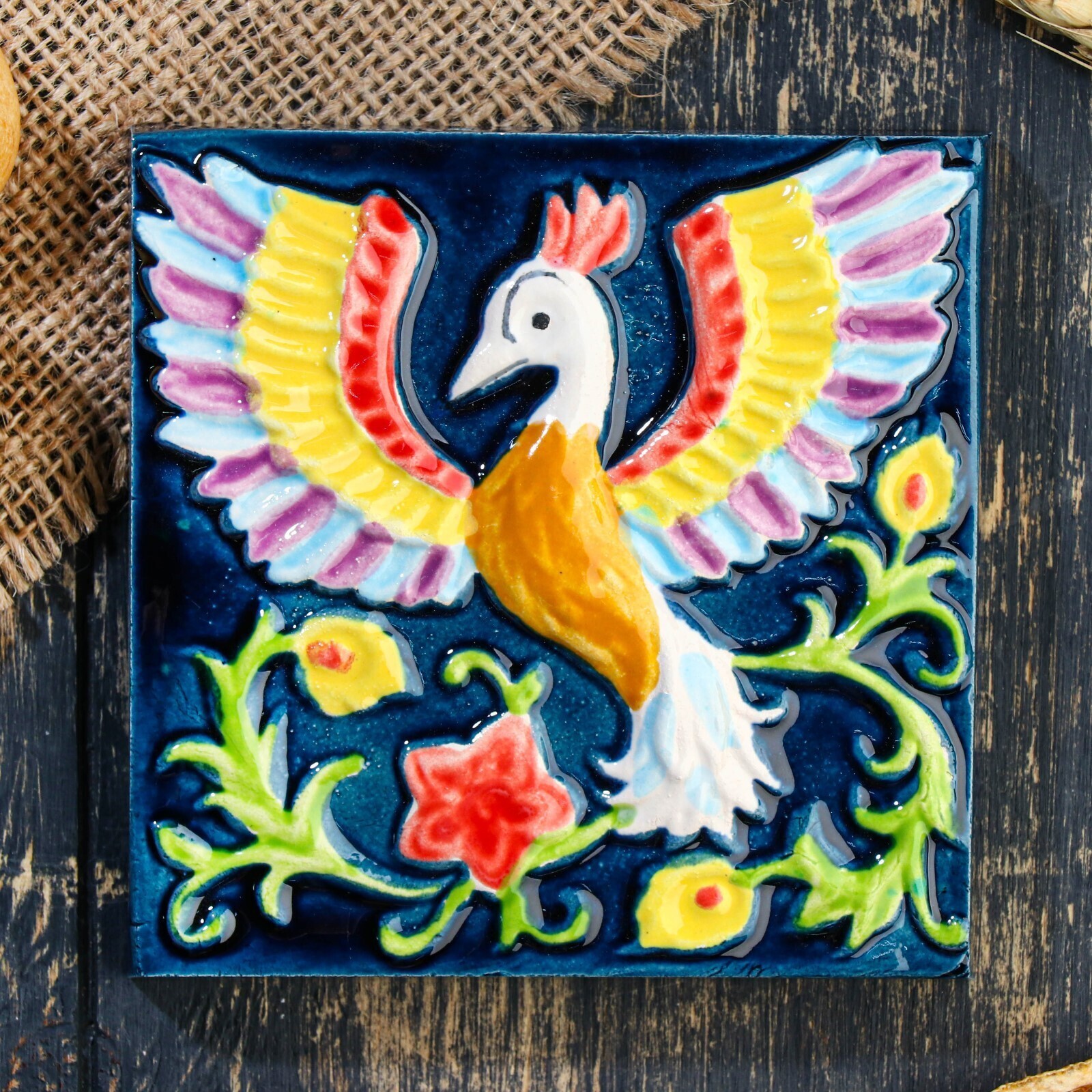 Изразец "Феникс отминка", ярославская майолика, 10х10 см