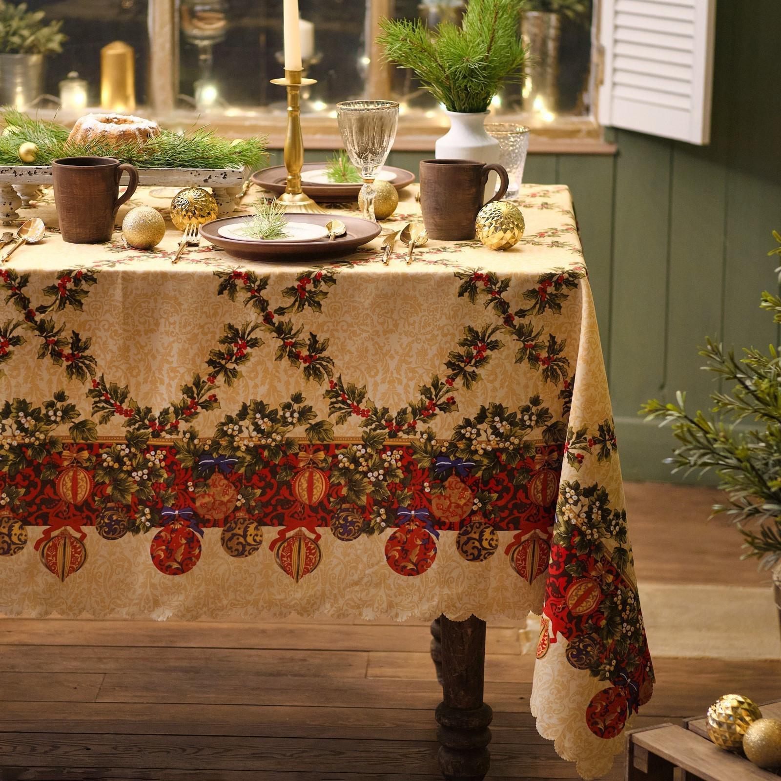 Скатерть новогодняя Доляна "Ёлочные игрушки" 110*145 см, 100% п/э