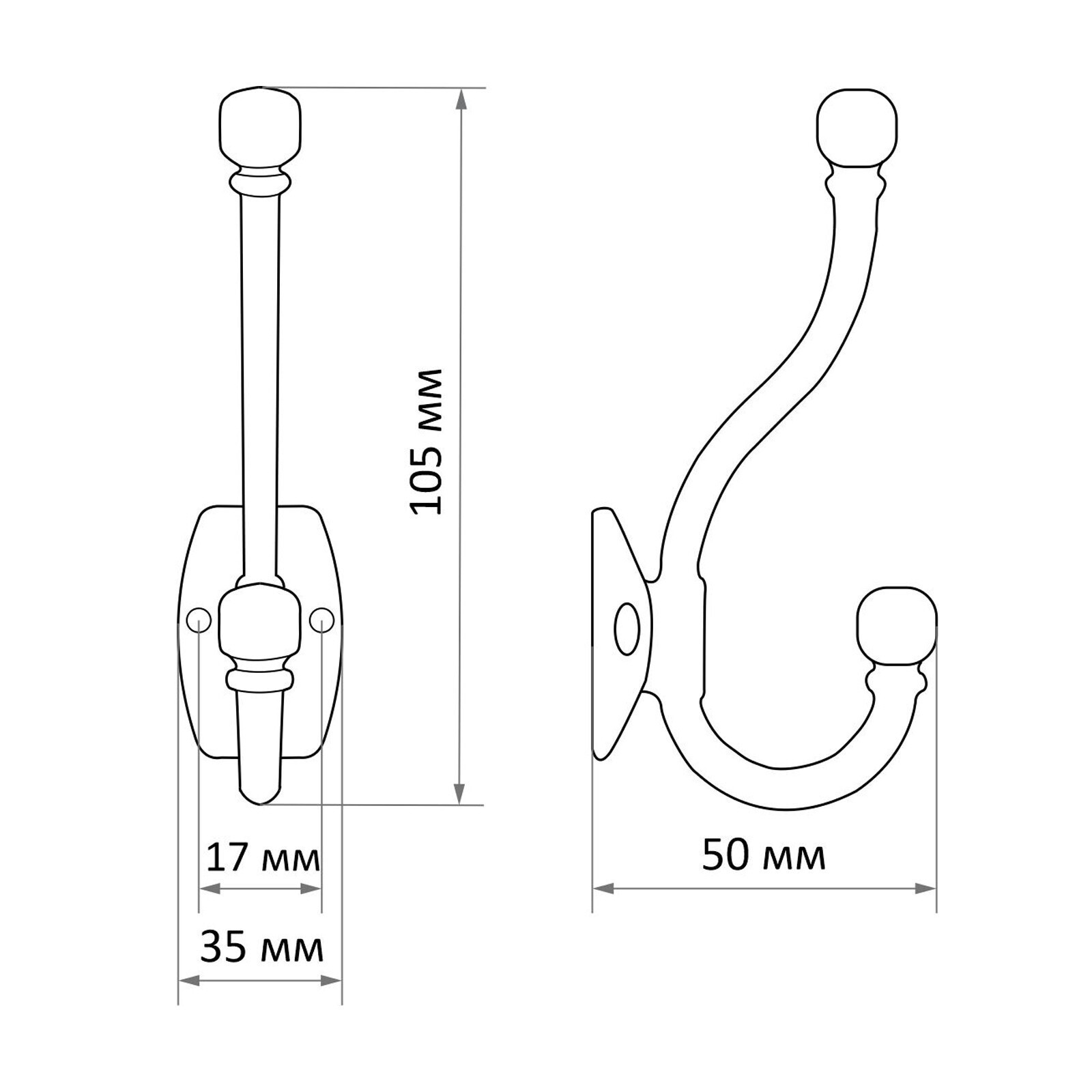 Крючок мебельный двухрожковый ТУНДРА КМ04SD, цвет черный металлик