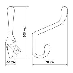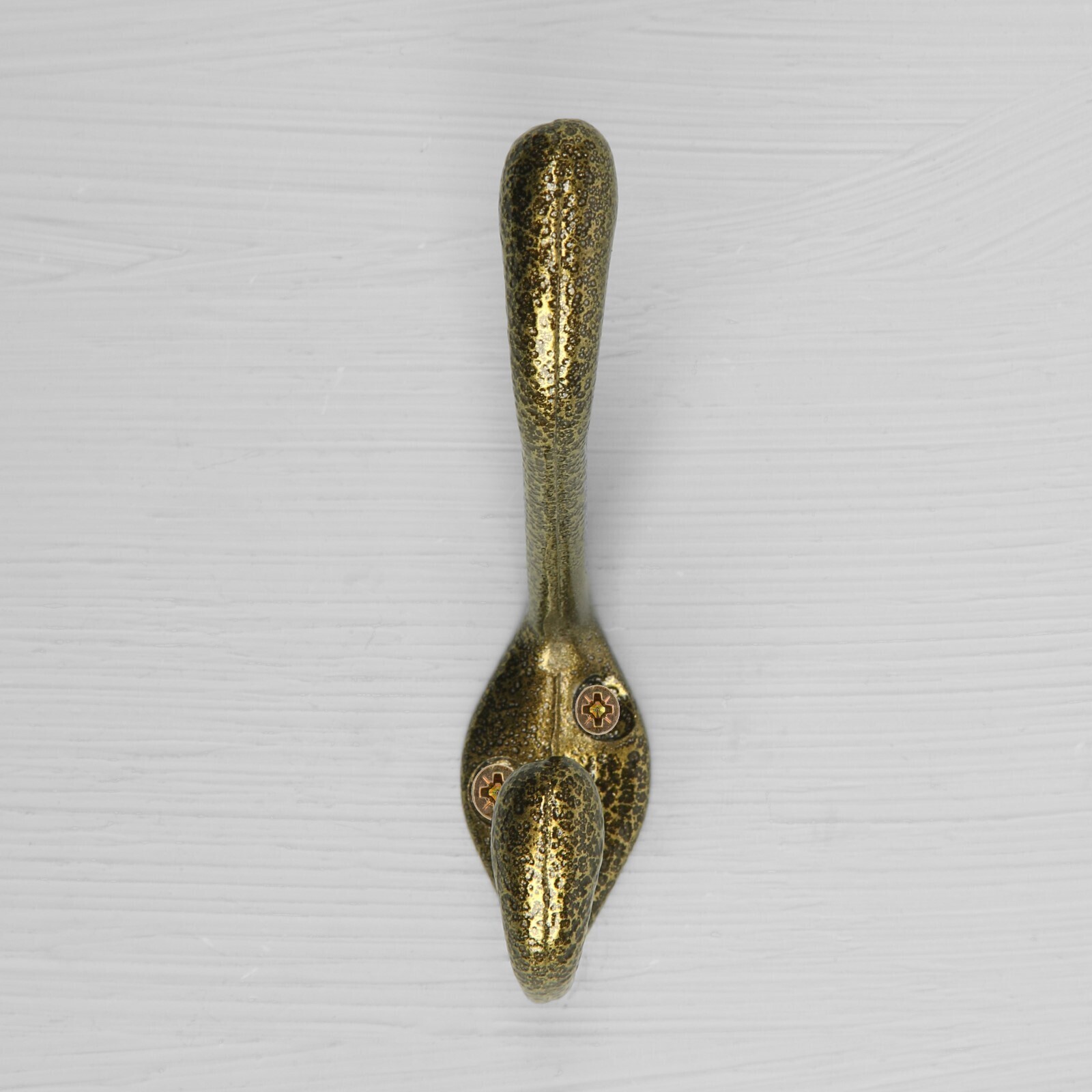 Крючок мебельный двухрожковый ТУНДРА КМ06BS, цвет золото на черном