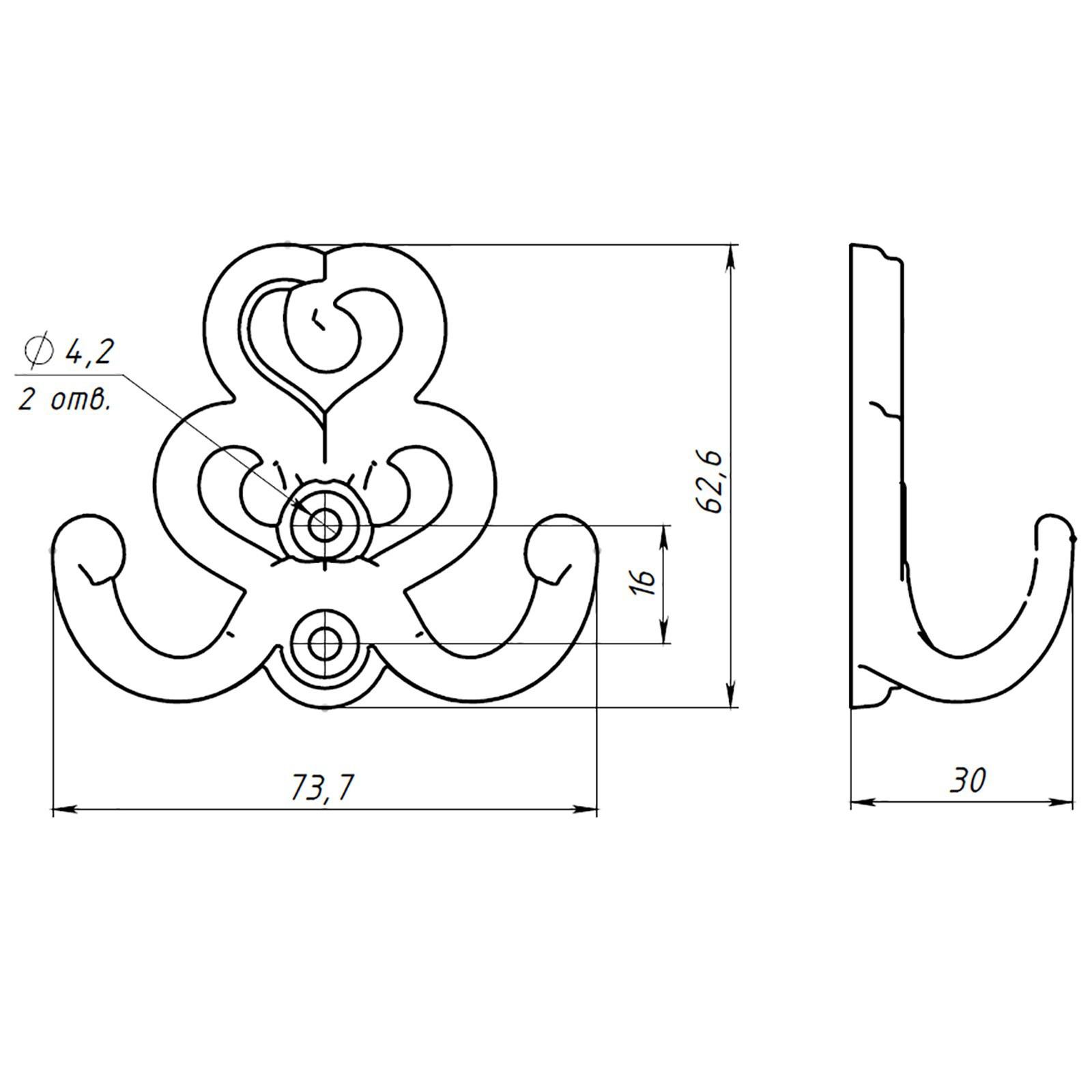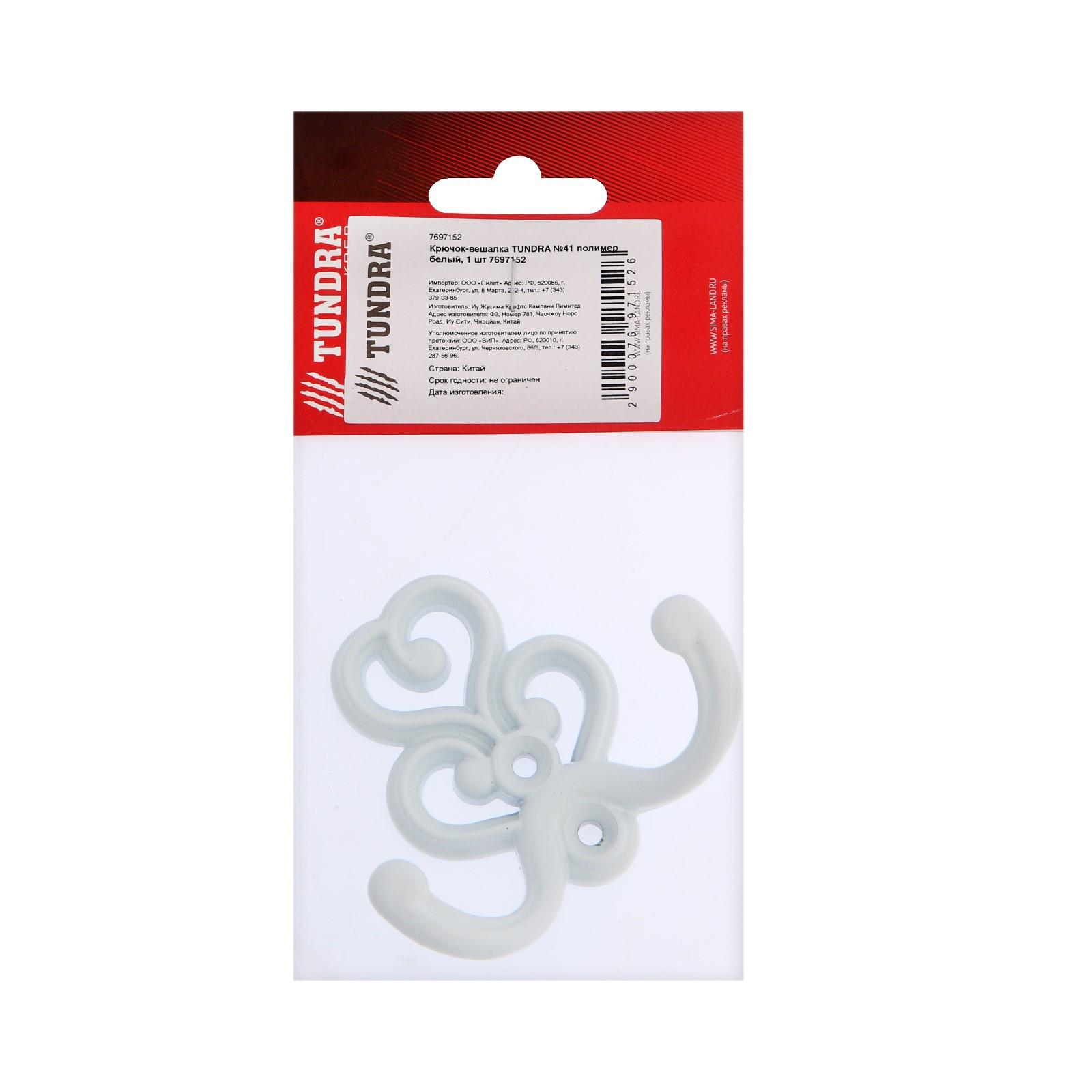 Крючок-вешалка ТУНДРА №41, полимер белый, 1 шт.