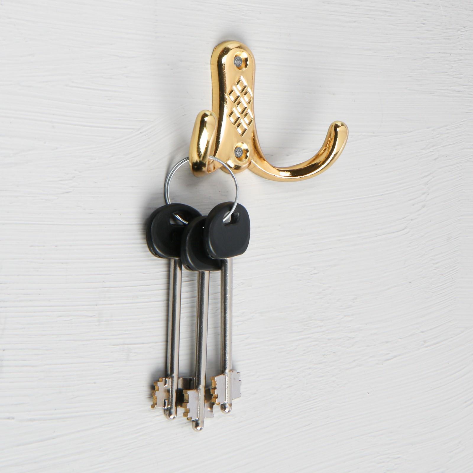 Крючок мебельный KM204GP, двухрожковый, цвет золото