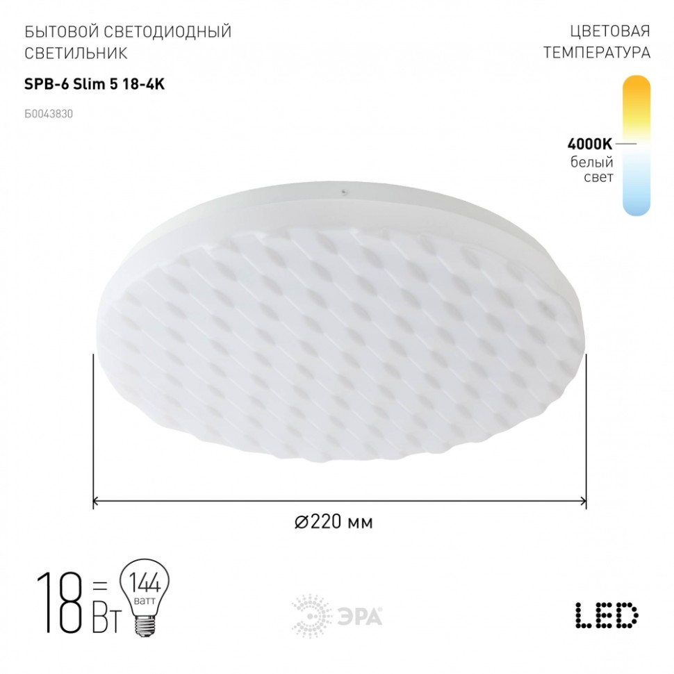 Заводская упаковка нарушена или отсутствует. Товар НОВЫЙ, в полной комплектации. / Компактный потолочный светильник SPB-6 "Slim 5" безупречно впишется в любое пространство.Одним из основных преимуществ светодиодного светильника является прочный стальной корпус. Противоударные свойства обеспечивают ему долгий срок службы. Мягкое холодно-белое свечение люстры (4000 К) не раздражает глаза. Рассеиватель из пластика обеспечивает равномерное распределение света. Футуристичный рельефный дизайн плафона идеально сочетается с круглым плоским корпусом. За счет этого электросветильник освежит интерьер гостиной, спальни или прихожей. Мощность 18 Вт и срок службы 30 000 часов позволят беспрерывно использовать светодиодную люстру, создавая мистическую атмосферу!