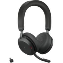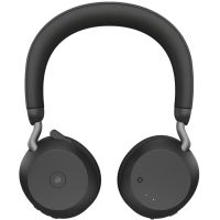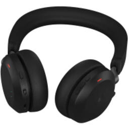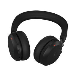 Гарнітура Jabra Evolve2 75 MS Stereo USB-C Link380c Bluetooth Black (p/n: 27599-999-899) - бездротова преміальна Bluetooth гарнітура на два вуха з можливістю одночасного підключення до 2-х пристроїв (Bluetooth 5.2), з потужними 40-мм динаміками, революційною технологією на основі подвійного поролону, які максимально ізолюють від навколишнього середовища та активним шумозаглушенням (подвійна гібридна система активного шумоподавлення з прямим та зворотним зв'язком), час роботи батареї до 36 годин, сертифікована під Microsoft Teams, відповідає вимогам Microsoft Teams Open Office requirements і має функціональну кнопку MS Teams для миттєвого підключення до наради, прослуховування повідомлень і перегляду пропущених викликів. Jabra Advanced Active Noise Cancellation (ANC)™ подвійна гібридна система активного шумоподавлення з прямим та зворотним зв'язком забезпечує неперевершену якість дзвінків і в гучному офісному середовищі і в шумному контакт-центрі, на вулиці, в кафе, в аеропорту.