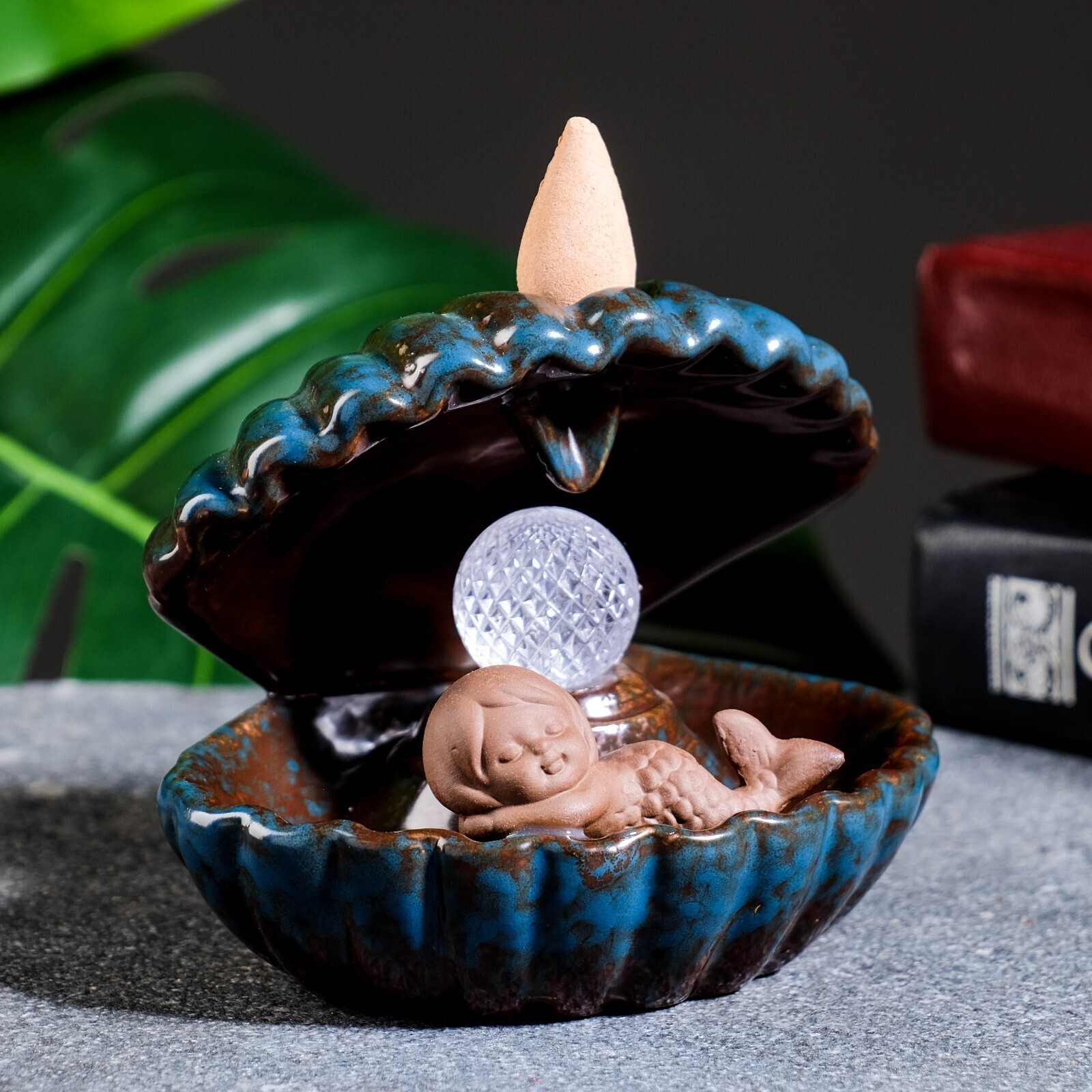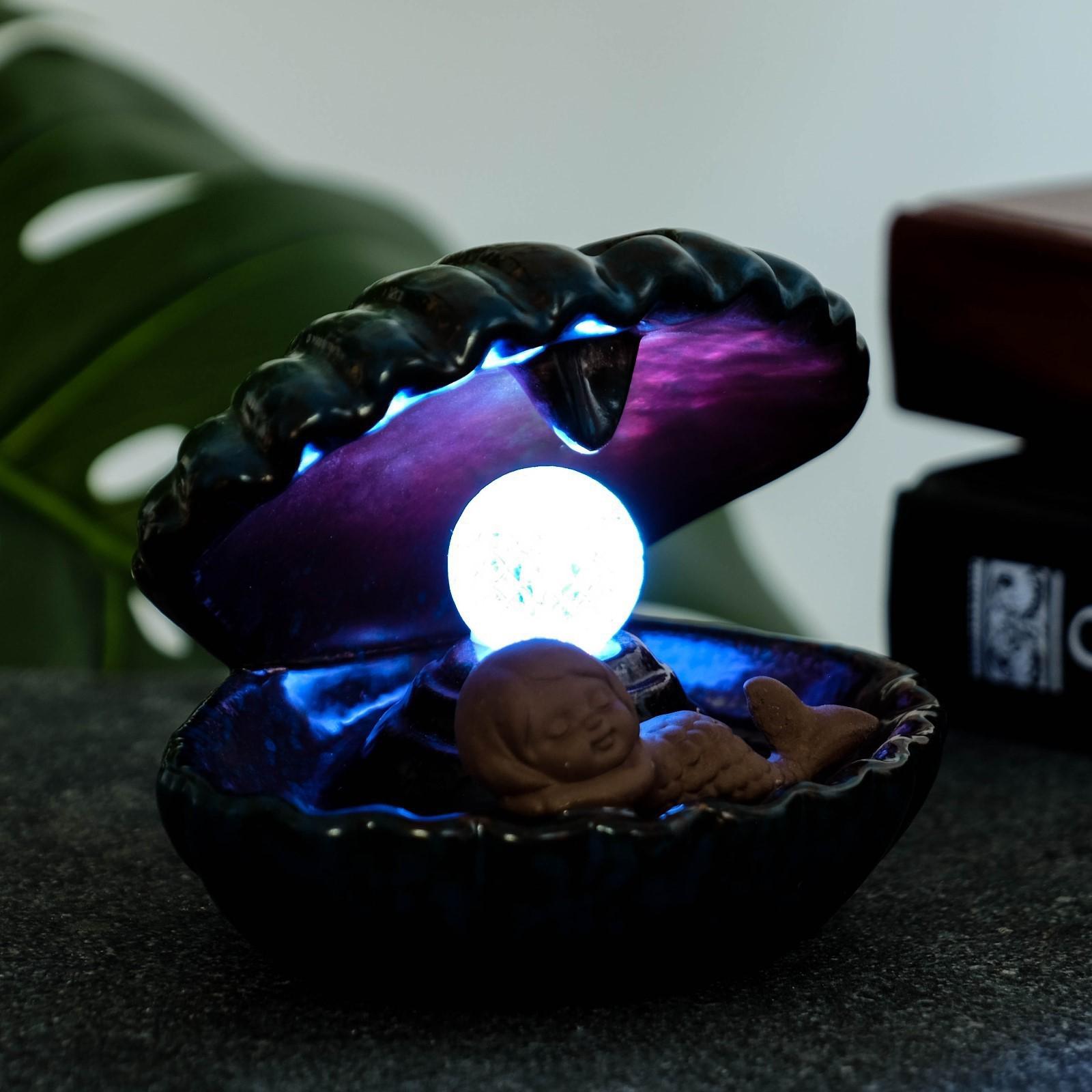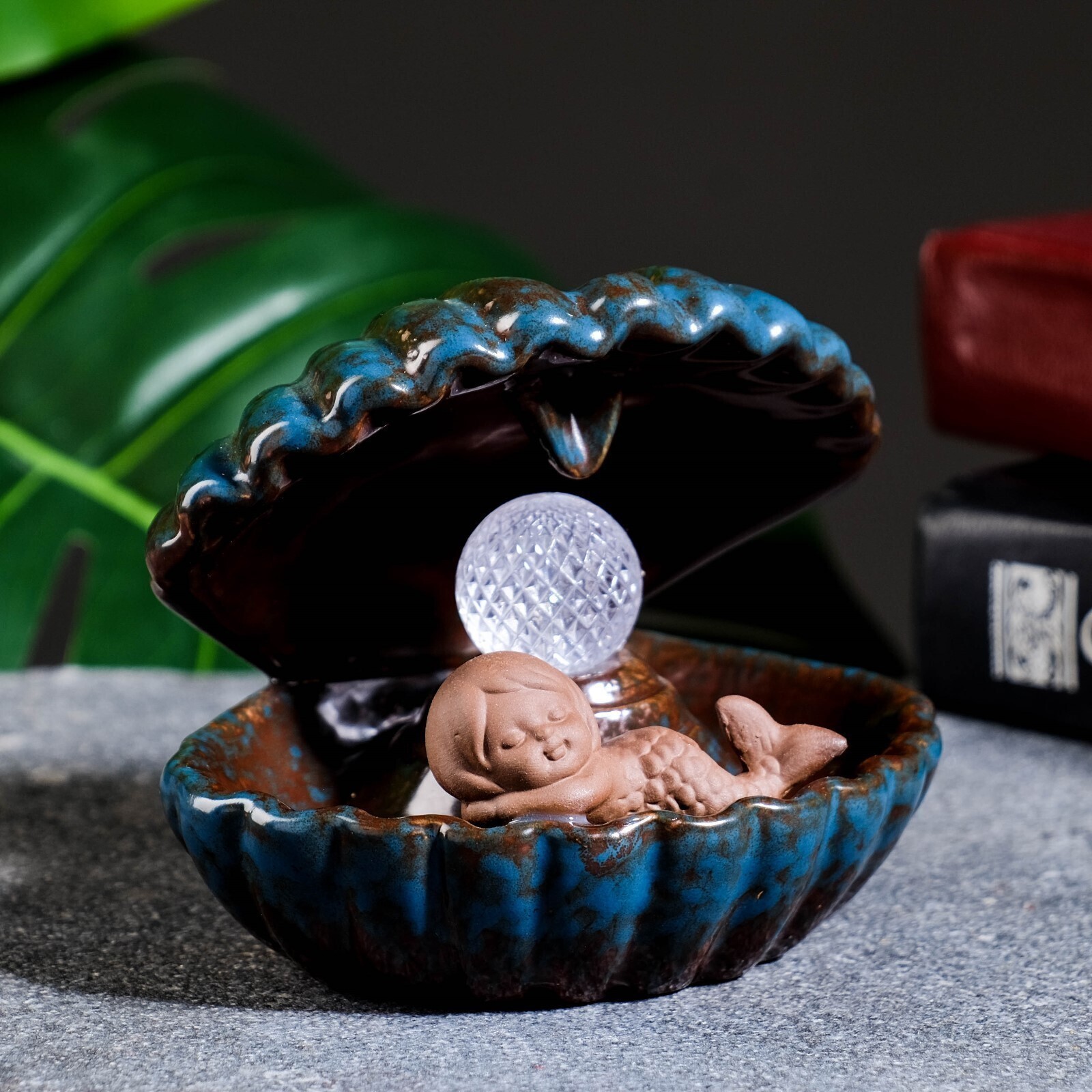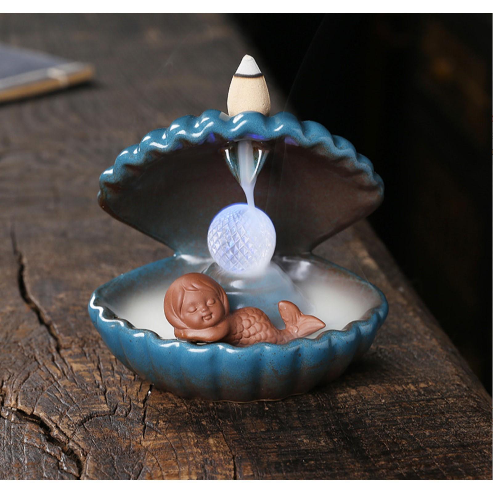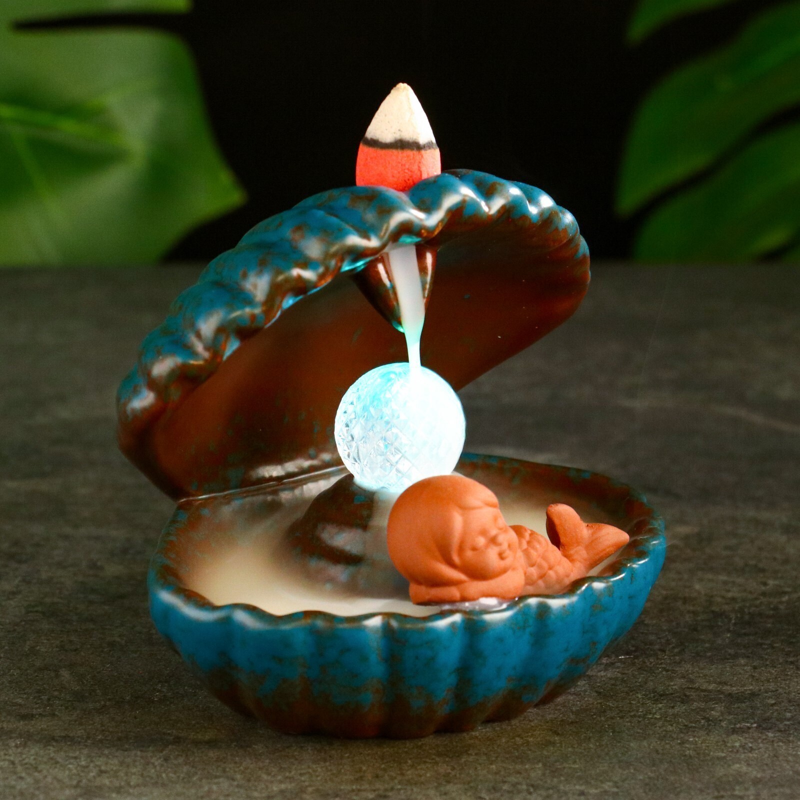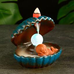 Набор благовоний на подставке "Девочка в ракушке" 11х10см, с подсветкой батарейки LR44