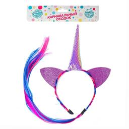 Карнавальный ободок «Единорог», с косичкой, цвет розовый
