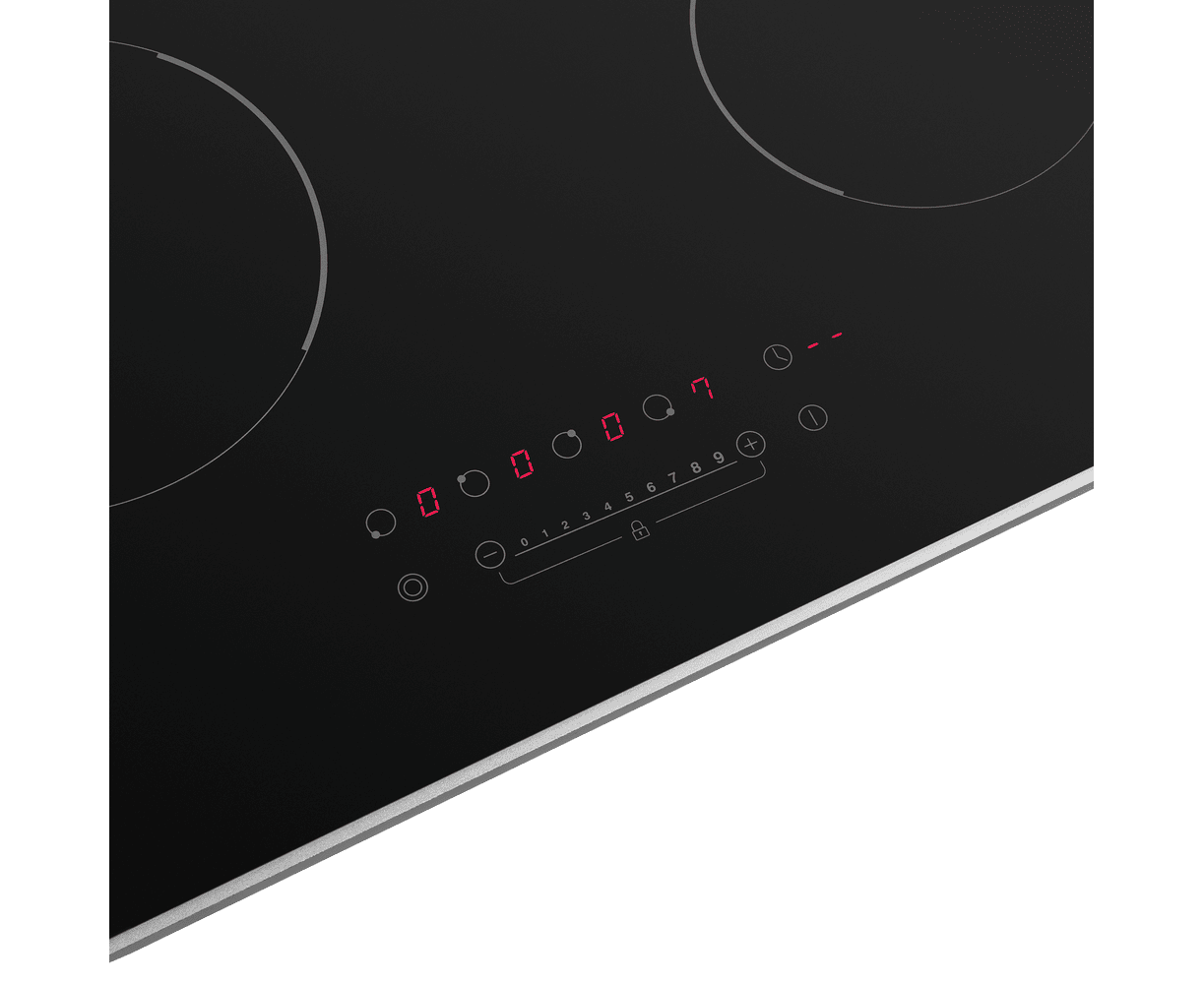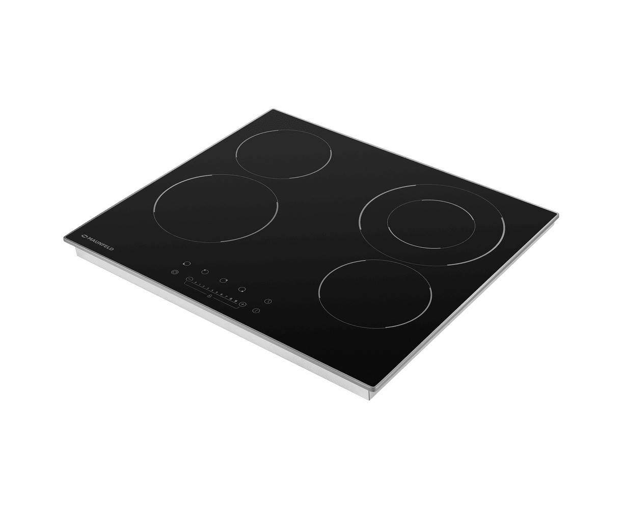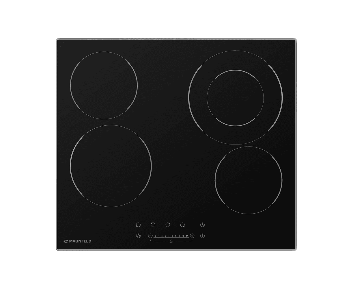 Стильная электрическая встраиваемая варочная панель на 4 конфорки шириной 60 см выполнена из ударопрочной стеклокерамики черного цвета с элегантной металлической окантовкой по периметру, которая служит для защиты от сколов на торцах и не дает жидкости, убежавшей при готовке попасть на столешницу. Поверхность устойчива к появлению царапин, легко очищается с помощью мягкой губки и моющего средства или специального скребка.