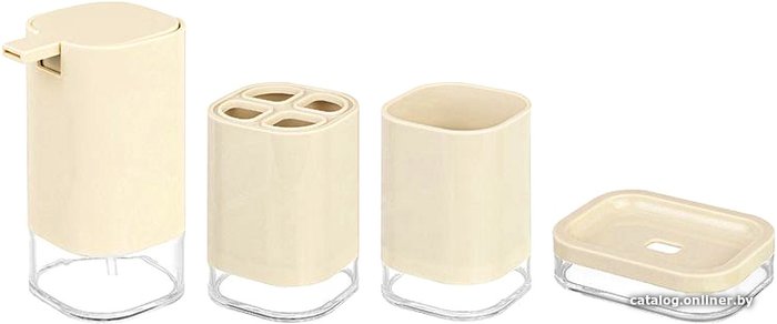 - Комплектация дозатор жидкого мыла, мыльница, стакан для зубных щеток, стакан косметический