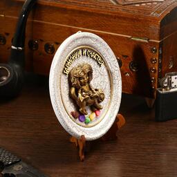 Сувенирная тарелка изготовлена из керамики с добавлением орнамента из гипса и минералов.