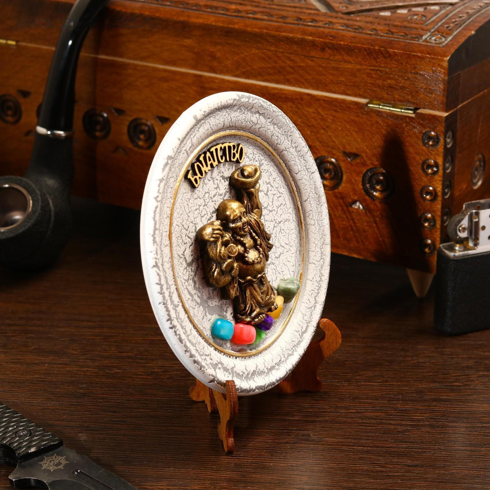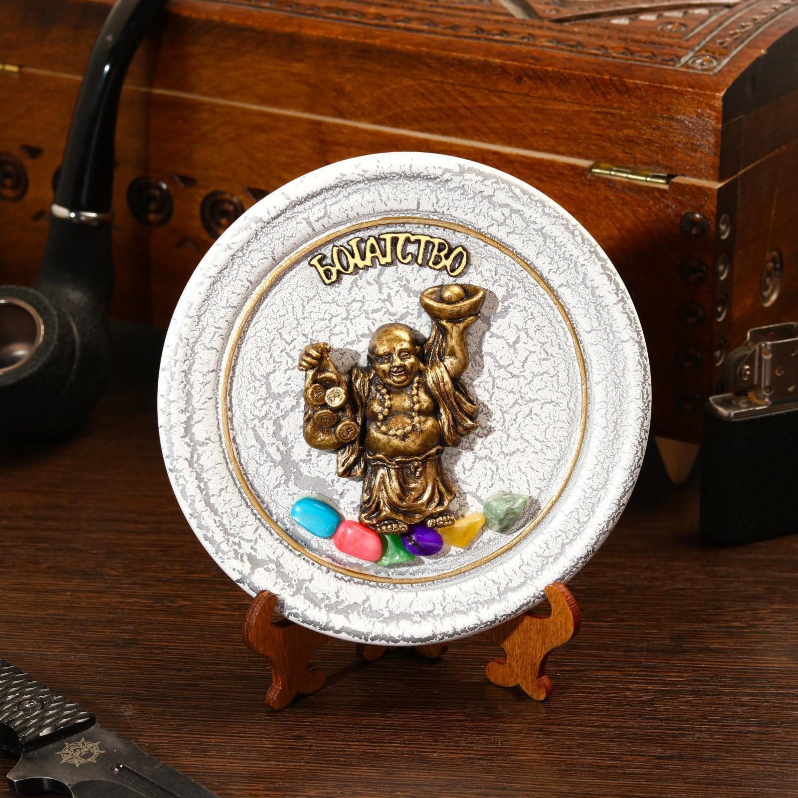 Тарелка сувенирная "Хотей", керамика, гипс, минералы, d=11 см
